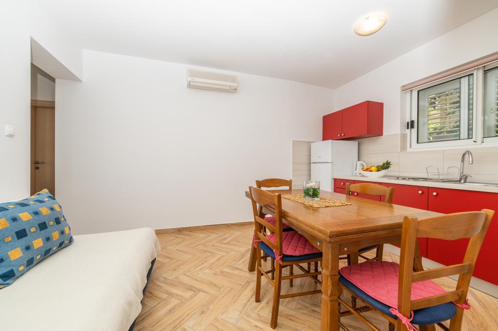 Pěkný a uklizený apartmán v klidné části centra Makarské, jen minutu chůze na centrální náměstí a poté po promenádě na pláž.To znamená, že když budete ubytováni v našem apartmánu, nepotřebujete auto , protože vše obejdete pěšky. Byt má pokoj, kuchyň, koupelnu a obývací pokoj. Všechny pokoje jsou klimatizované. Parkování je zahrnuto v ceně.