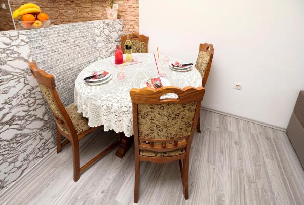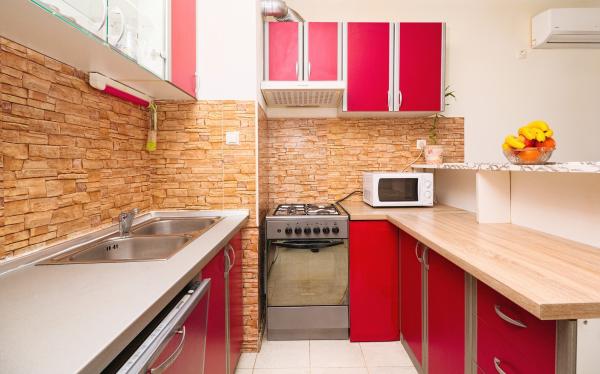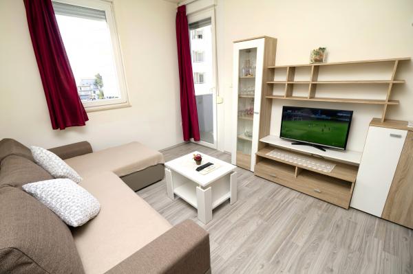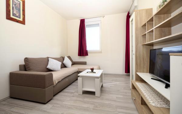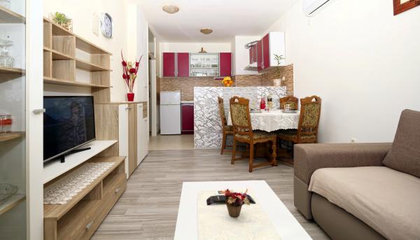 Jeden byt v zrgadi v prvním patře - novostavba, plně zařízené a vybavené. Sasotji se z chodby, obývacího pokoje, jídelny a kuchyně, ložnici a koupelnu. Malý balkon s výhledem na moře. Možnost parkování v podzemních garážích budovy (vyhrazené parkovací stání), a v přední části budovy (sdílené parkování).