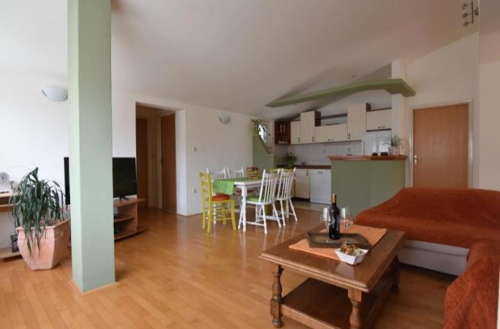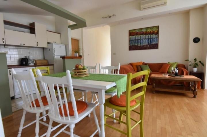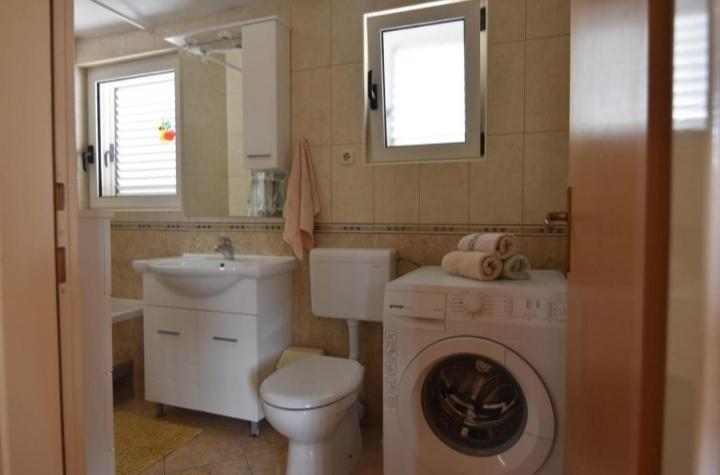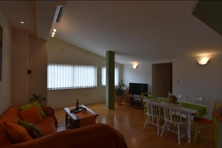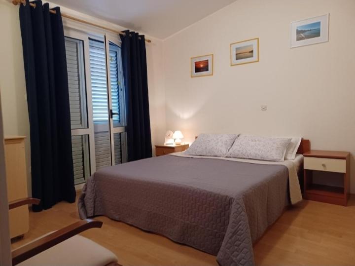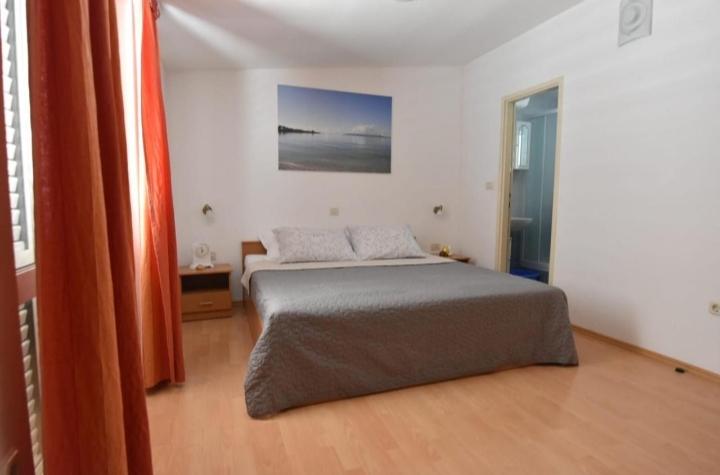 Plně a moderně vybavený byt v klidné části města. Nachází se ve druhém patře. Skládá se ze 3 ložnic (2 lůžka o rozměrech 160x200 a 1 lůžko o rozměru 180x200), 2 koupelen (1x sprchový kout, 1x vana), prostorného obývacího pokoje s jídelnou, vybavené kuchyně a 2 balkonů. Byt se nachází 5 minut chůze od centra města a restaurací a 10 minut chůze od pláže a autobusového nádraží.