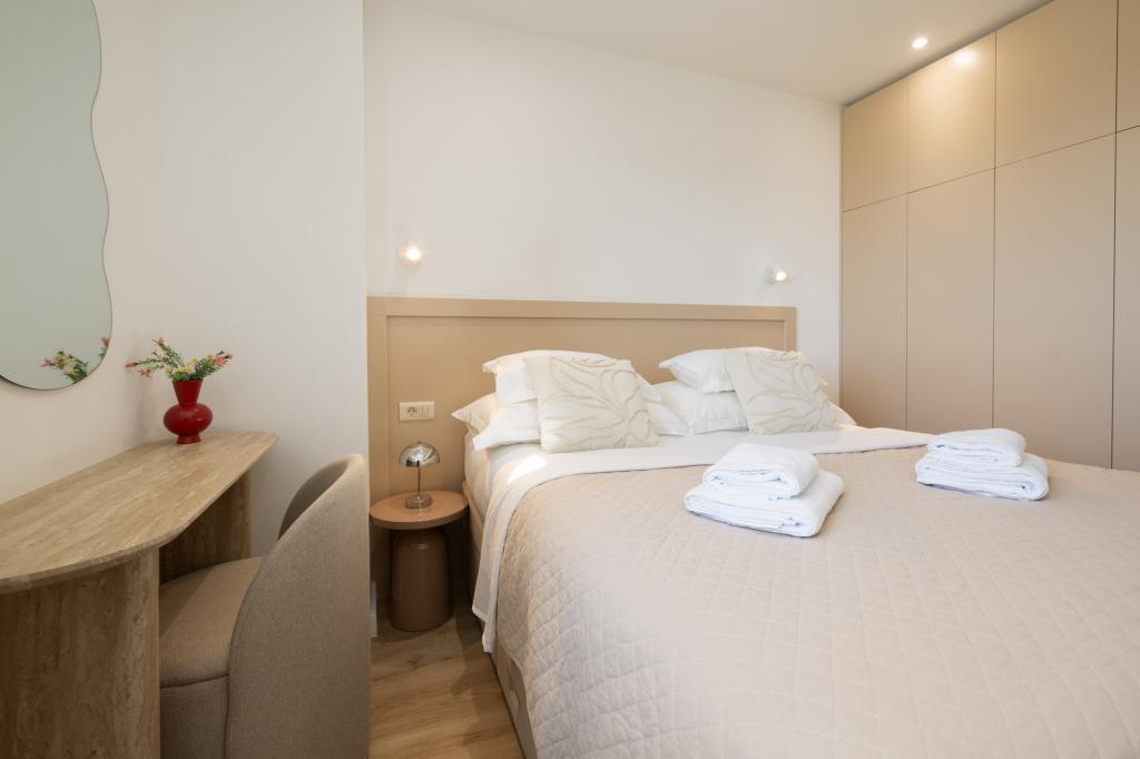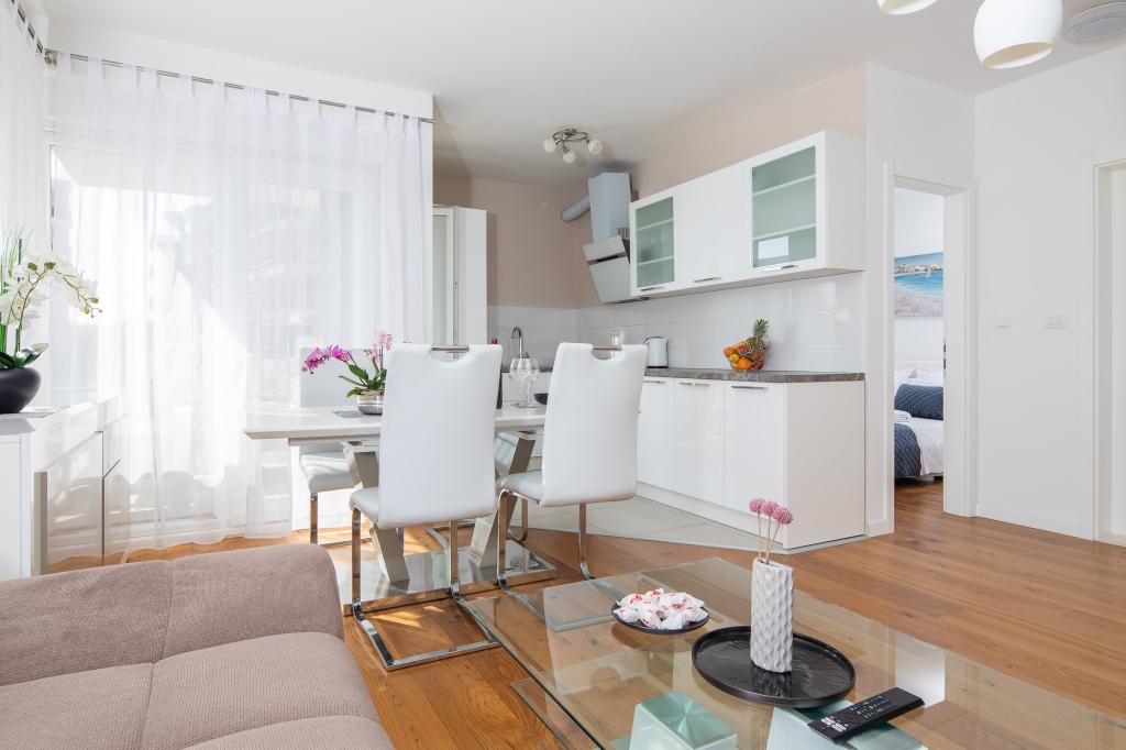 Apartmán Lana se nachází 800 m od pláže a moře, centrum je také 800 m daleko. Tento apartmán nabízí odpočinek a relaxaci právě proto, že se nachází daleko od hluku a davů. Skládá se z 1 ložnice, moderní kuchyně, balkonu s částečným výhledem na moře. V obývacím pokoji je rozkládací pohovka pro 2 osoby. Koupelna je moderně vybavena sprchovým koutem a pračkou. Užijte si apartmán Lana a rezervujte si nyní!