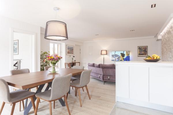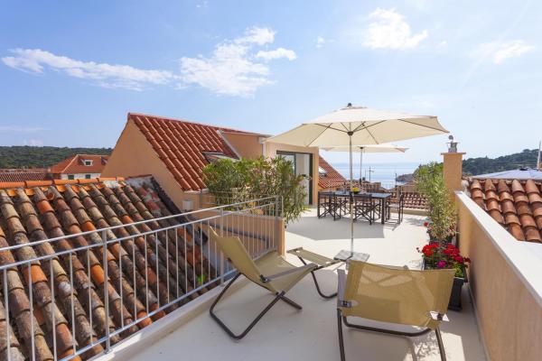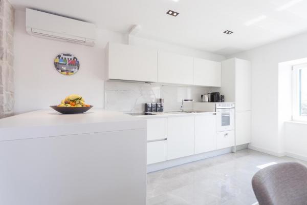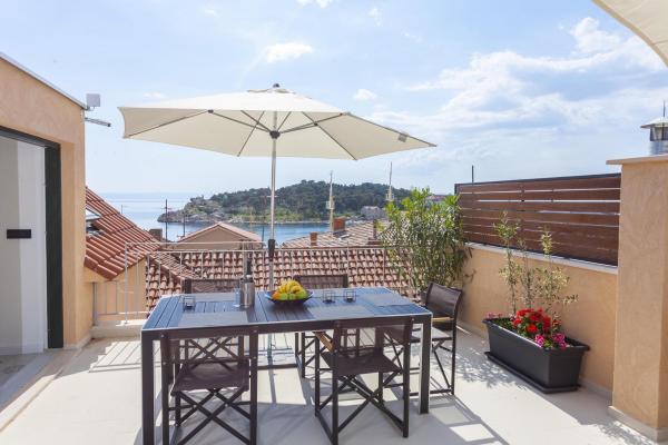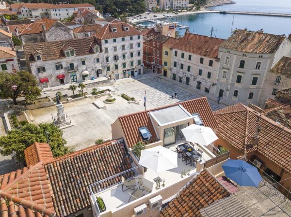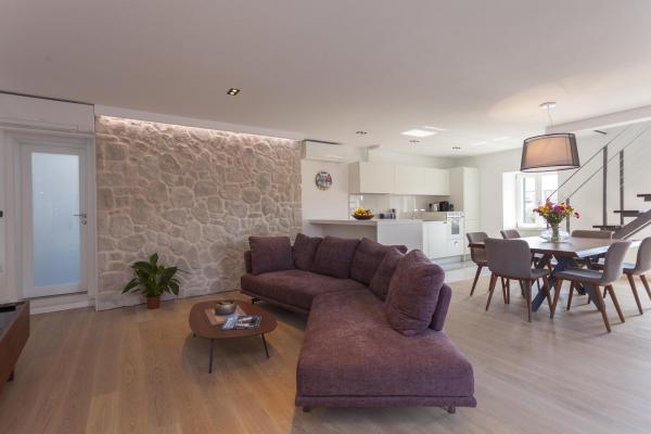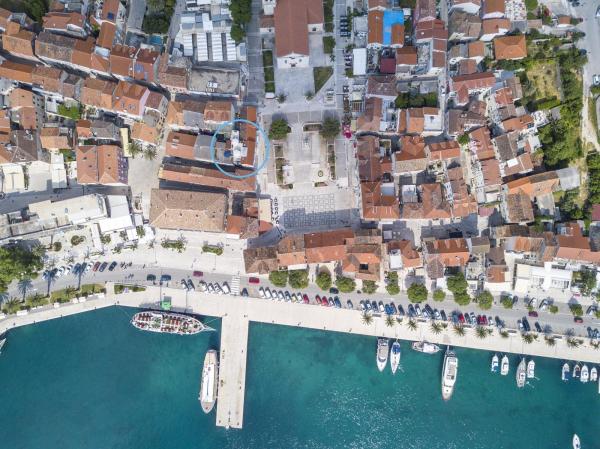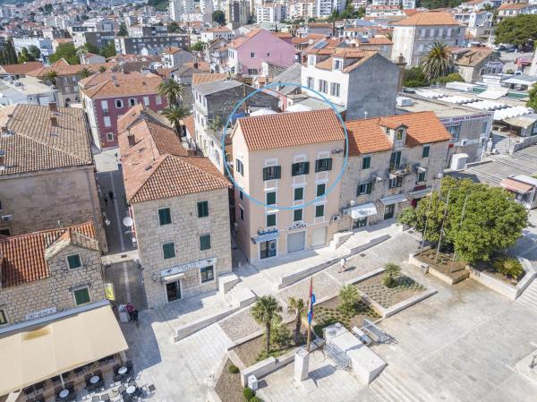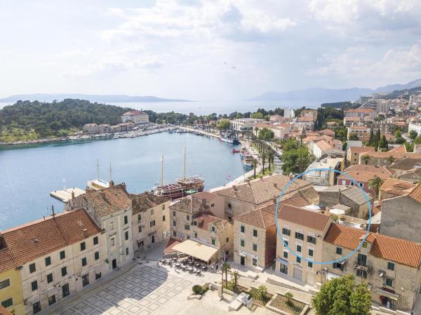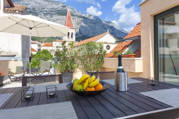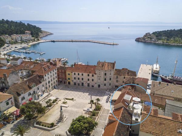 Nový, moderní a luxusně zařízený mezonetový byt v centru Makarské. Nachází se na hlavním náměstí, pouhých 50 metrů od nábřeží města, nejlepších městských restaurací, vinárny a katedrály sv. Mark. Byt má krásnou terasu s výhledem na městský přístav. Byt je plně klimatizovaný, bezdrátové připojení k internetu je k dispozici ve všech pokojích a každý pokoj a obývací pokoj je vybavený LCD TV. Kuchyně je plně vybavena všemi spotřebiči včetně myček nádobí, mikrovlnné trouby, trouby, kávovaru apod. K dispozici jsou 2 koupelny s ručníky a toaletními potřebami. Soukromé parkoviště je vzdálené asi 100 m od apartmánu a cena 16 € / den.