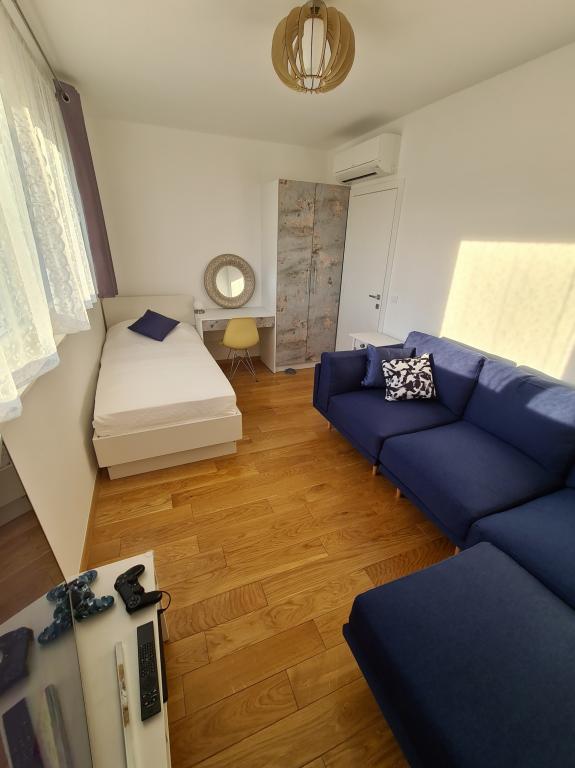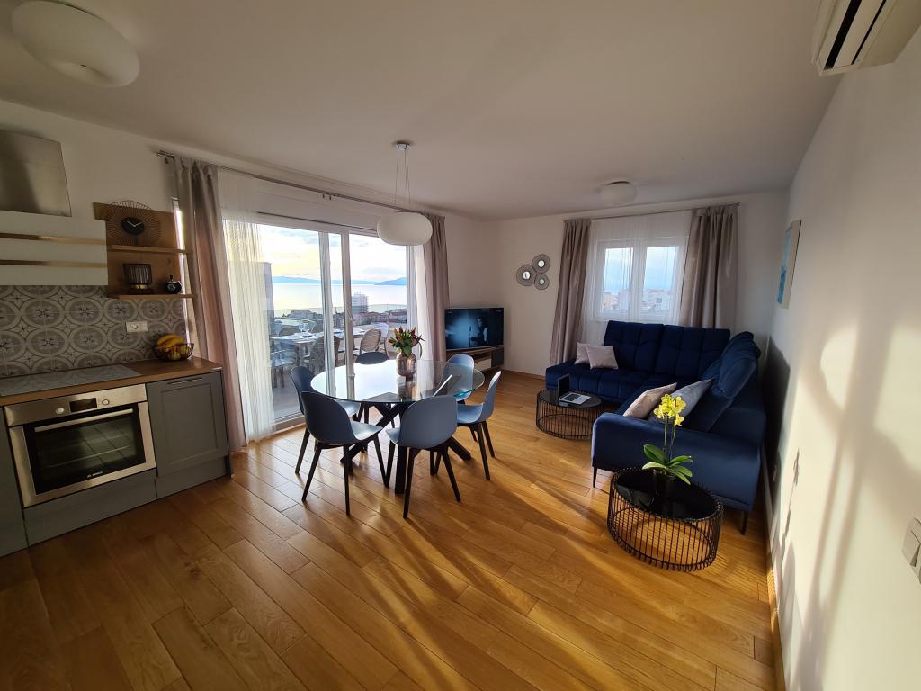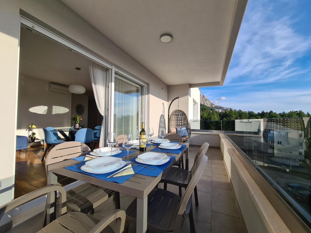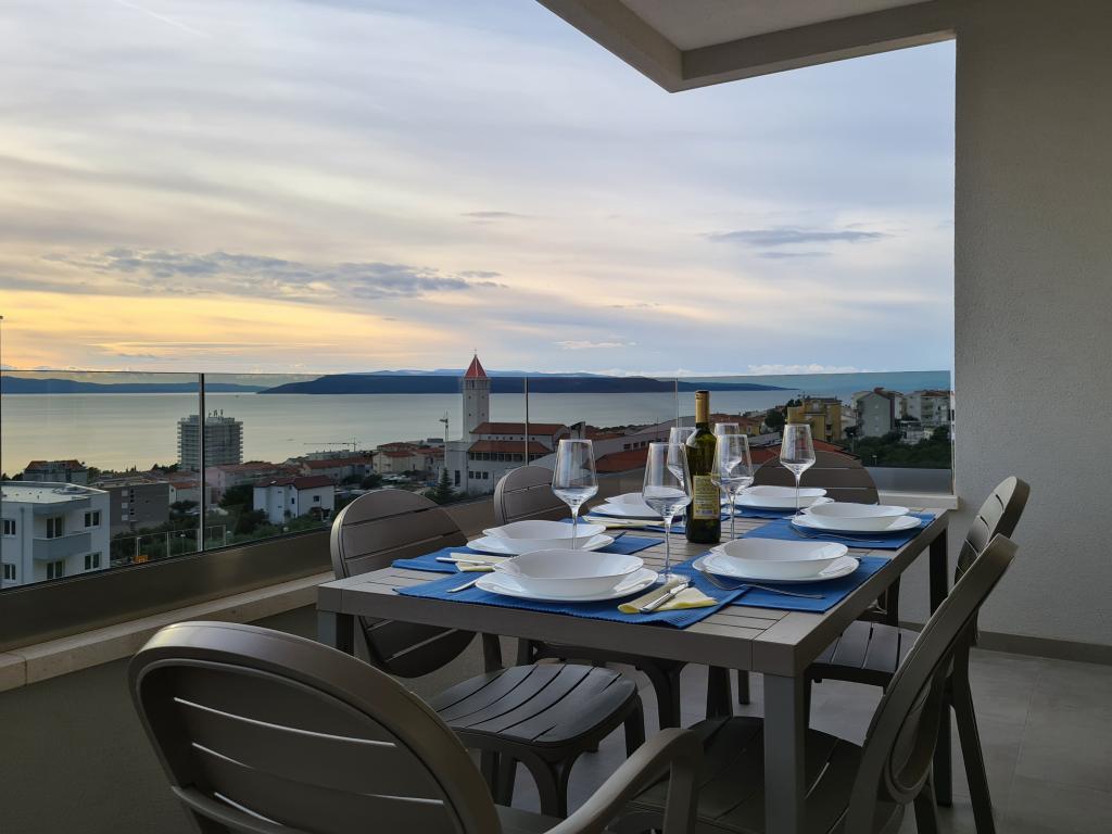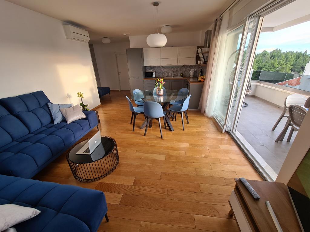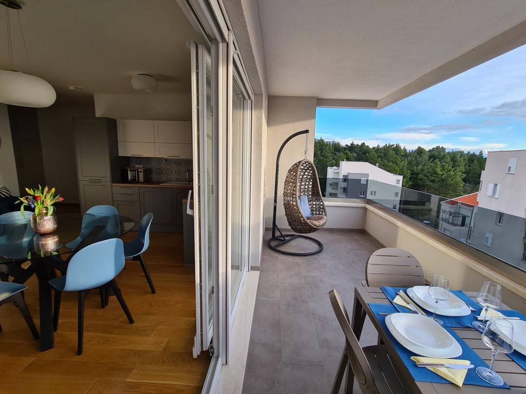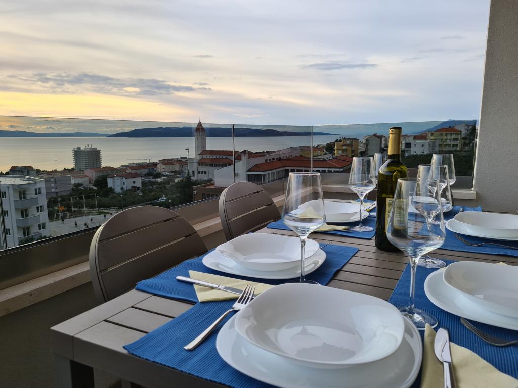Ve 4. (nejvyšším) patře nově postavené budovy s výtahem v klidné rodinné čtvrti se nachází jižně zrekonstruovaný byt o rozloze 83 m2 s velkým obývacím pokojem a plně vybavenou kuchyní (lednice, mraznička, mikrovlnná trouba, myčka, trouba) , sporák), 3 ložnice, z nichž 2 jsou s manželskou postelí (160x200) a třetí je se samostatnou postelí (90x200) a pohovkou, která může sloužit jako přistýlka, a je zde další TV a PlayStation 4, protože tento pokoj je navržen jako další obývací pokoj. Každý pokoj má klimatizaci (celkem 4). V bytě jsou 2 koupelny se sprchou, pračka / sušička, žehlička, vysoušeč vlasů, trezor. K dispozici je bavlněné saténové ložní prádlo a ručníky. Na prostorném balkonu o rozloze 13 m2 je další jídelní stůl pro 6 osob a závěsné křeslo, které si můžete užít výhled na moře a ostrovy Brač a Hvar. K dispozici jsou 2 parkovací místa: 1 před budovou a 1 v garáži budovy. Všechno v bytě je nové, kvalitní a pečlivě vybrané pro maximální pohodlí našich hostů.