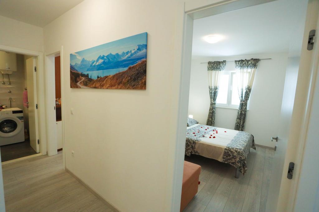 Moderně vybavený apartmán v prvním patře novostavby s výtahem. Apartmán má vše, co potřebujete pro příjemný pobyt na dovolené. Apartmán Petra se skládá z jídelny s vybavenou kuchyní, obývacího pokoje s rozkládací pohovkou, která slouží jako přistýlka, koupelny a malé toalety a dvou ložnic. Jeden pokoj má manželskou postel a druhý má dvě lůžka, která lze v případě potřeby oddělit. Nemovitost se nachází 5 minut chůze od centra nebo nejbližší pláže. Nedaleko se nachází obchod a sportovní hřiště pro rekreaci.