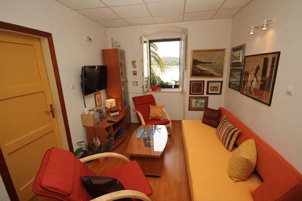 Byt se nachází v samém srdci historického centra, v malebném starém kamenném domě, pouhých 20 metrů od moře, v blízkosti restaurací, bank a zelenou trhu. Moderní a pohodlný a má dvě okna s výhledem na moře a ostrovy. S vína a ovoce přivítání přejeme Vám příjemný pobyt !!!