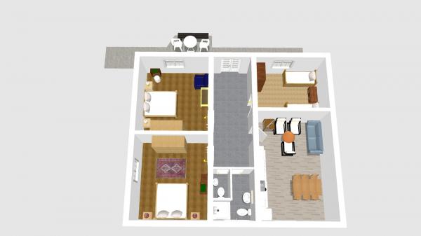 Apartmán Ruzmarin se nachází v klidné čtvrti blízko centra (5 min chůze na hlavní náměstí a 15 min chůze na městskou pláž). Nachází se v přízemí rodinného domu a má samostatný vchod ze dvora, který je hostům k dispozici. Jsou zde dvě ložnice s manželskou postelí a jedna se dvěma samostatnými lůžky. Má jednu kompletní koupelnu (WC, umyvadlo a sprchový kout) a samostatné WC s umyvadlem. Velmi dbáme na čistotu, máme bílé ložní prádlo, které sušíme na slunci. V obývacím pokoji a kuchyni je klimatizace. Kuchyň je plně vybavena veškerým potřebným nádobím. Apartmán je vybaven pro pohodlný pobyt 6 osob.