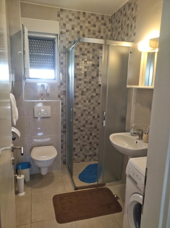 Apartmán A2 je moderní a prostorný apartmán a ideální volbou pro ty, kteří cestují jako pár. Obsahuje dvoulůžkový pokoj s přenosným ventilátorem a moskytiérou na okně a žehličkou a žehlicím prknem, obývací pokoj s klimatizací a psacím stolem s počítačem (počítač je propojen s TV kabelem HDMI2), jídelna, velká a dobře vybavená kuchyň (lednice s mrazákem, myčka, sporák a trouba, rychlovarná konvice), koupelna se sprchou a moskytiérou na okně, pračka a fén, velký balkon, bezplatné Wi-Fi a bezplatné parkování v budově.
