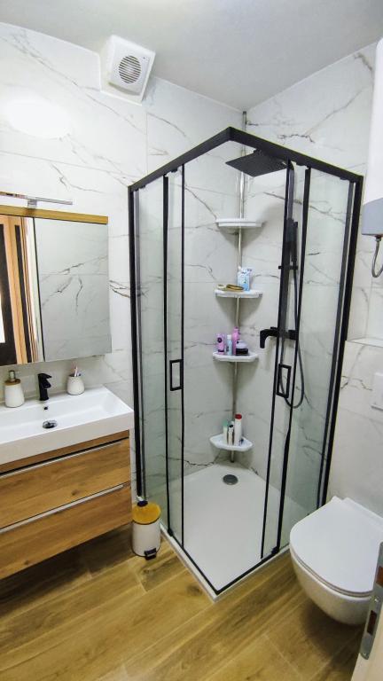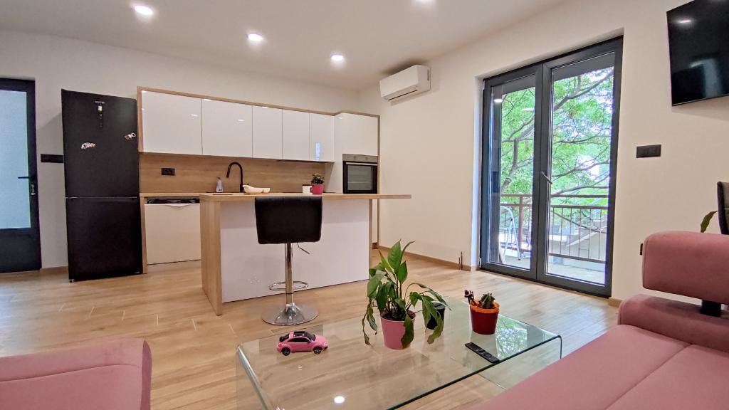 Nový, moderní a plně vybavený studiový apartmán pro 2 osoby se nachází v rodinném domě se soukromým vchodem. Nachází se v klidném prostředí a daleko od městského hluku, ačkoli je jen 5 minut chůze od pláže Osejava a centra Makarské. V bezprostřední blízkosti se nachází nákupní centrum, městské sportovní centrum, nemocnice a tržnice. Apartmán nabízí vše, co potřebujete pro pohodlný pobyt; čeká na vás moderní vybavení, včetně Wi-Fi, smart TV s Netflixem, klimatizace, plně vybavené kuchyně a koupelny. Bezplatné parkovací místo se nachází přímo před vchodem. Ideální pro každého, kdo si chce užít klid a soukromí a zároveň být blízko všech služeb, které Makarská nabízí.