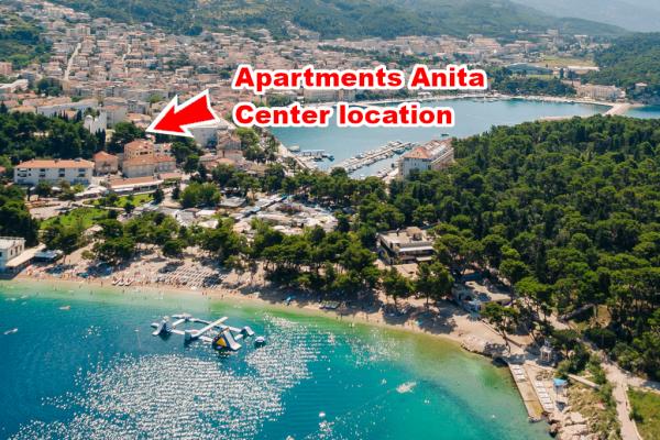 Apartmány se nacházejí v centru města Makarska, jen 30 m od hlavní promenádě a moře. Současně je vila s krásnou přírodou a skryté od městských komunikací, a poskytuje velmi příjemnou atmosféru. Apartmány jsou zcela nové a velmi zdobené, pouhých 100 metrů od hlavní pláže.