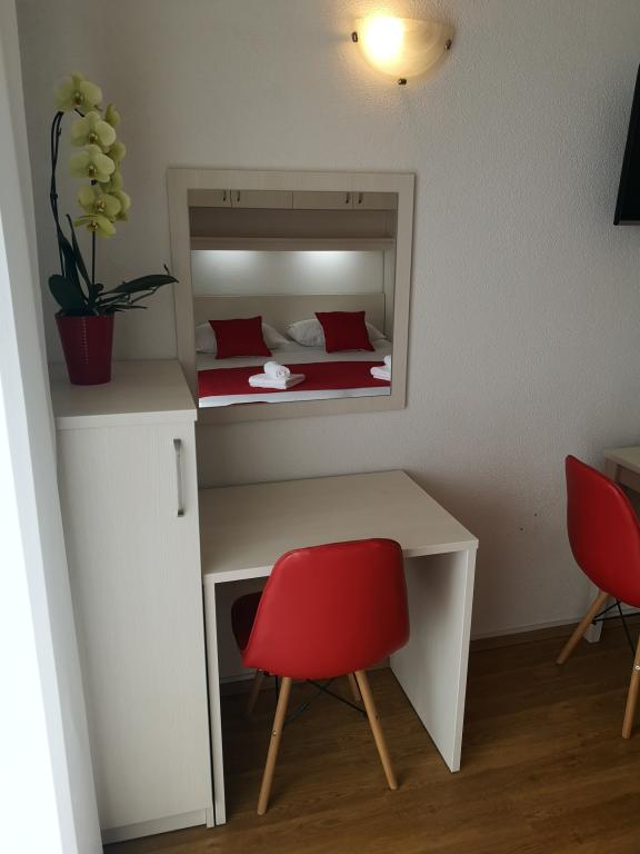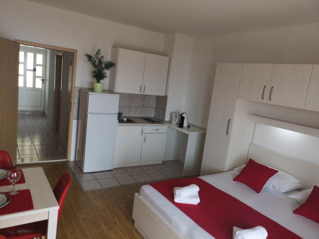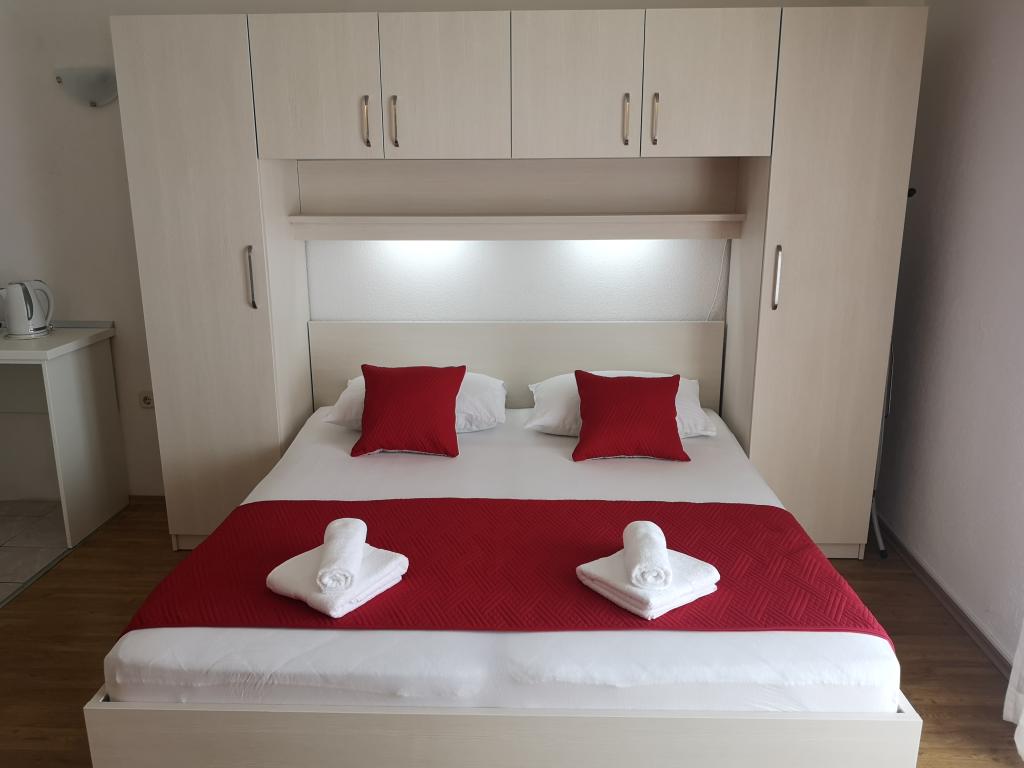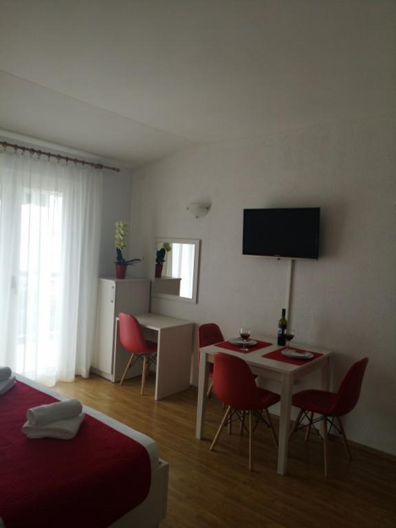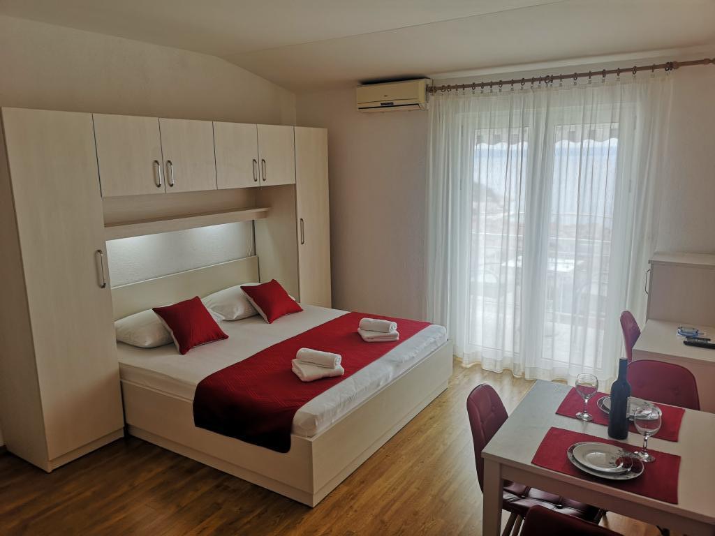 Apartmány Dević se nacházejí nad samotným centrem města Makarska na klidném místě s krásným výhledem na město, moře a okolní ostrovy Brač a Hvar. Krásná oblázková pláž je vzdálena pouhých 1000 m. Apartmány jsou obklopeny voňavými středomořskými rostlinami, díky nimž je váš pobyt uvolněnější a příjemnější. Apartmán má vlastní parkoviště, balkon s výhledem na moře, kuchyň vybavenou spotřebiči, nádobím a nádobím, ložnici, koupelnu se sprchou, klimatizaci a TV.