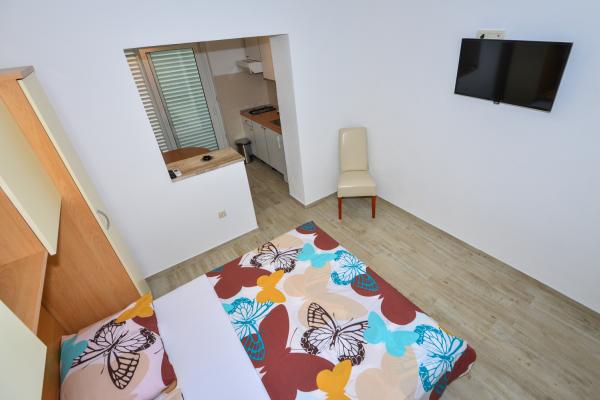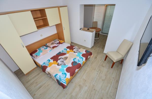 Apartmány Dina jsou jen minutu chůze od pláže, v klidné ulici, žádný hluk. Do centra města trvá méně než 5 minut chůze, a okolí je vše, co potřebujete, obchody, restaurace, diskotéka, plážový ...