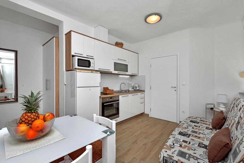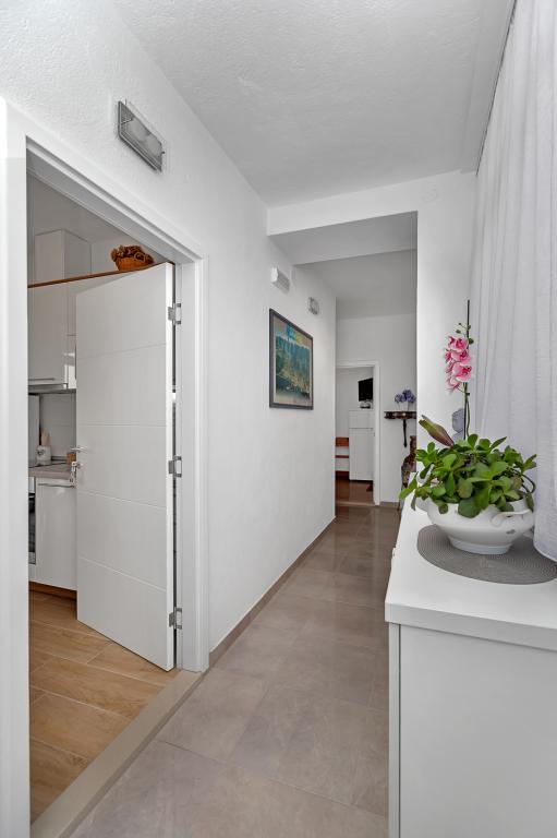 Naše moderně vybavené apartmány se nacházejí v rodinném domě v klidné části města, mezi Hotelem Biokovka a Hotelem Places-Dalmacija. Písečná pláž je jen 50 metrů od domu, stejně jako dva obchody s potravinami. Do centra města se dostanete za 10 minut procházkou po krásné promenádě obklopené borovicemi, podél které jsou četné restaurace a další zajímavá zařízení. K dispozici máme 3 ubytovací jednotky, každá s vlastním balkonem, vybavenou kuchyní oddělenou od spací části a samostatnými koupelnami. Cena zahrnuje parkování, internet, klimatizaci a pobytovou taxu.