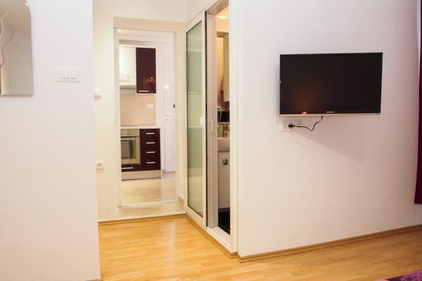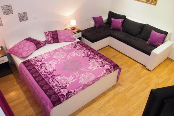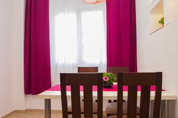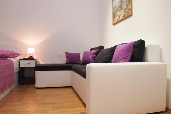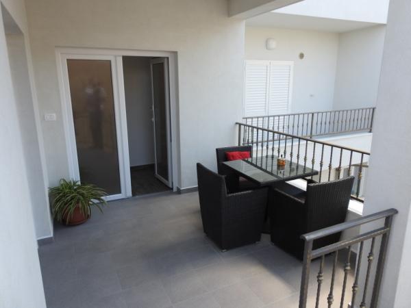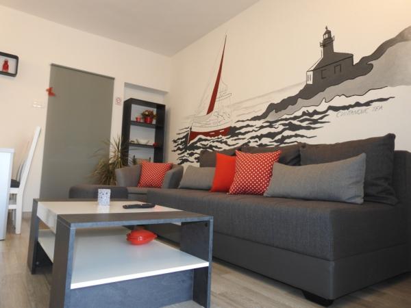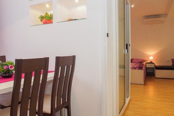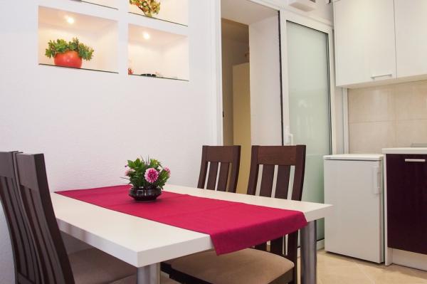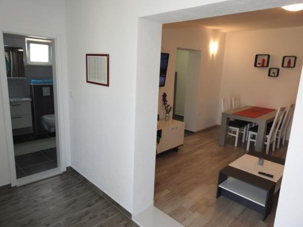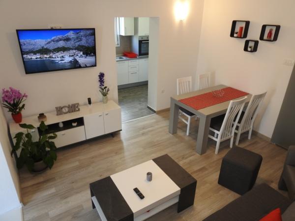 Apartmány se nacházejí v klidné části Makarské, 300m od centra. Má terasu, parkování, klimatizaci a TV. K dispozici je také venkovní gril. Ložní prádlo, ručníky a závěrečný úklid jsou zahrnuty v ceně.