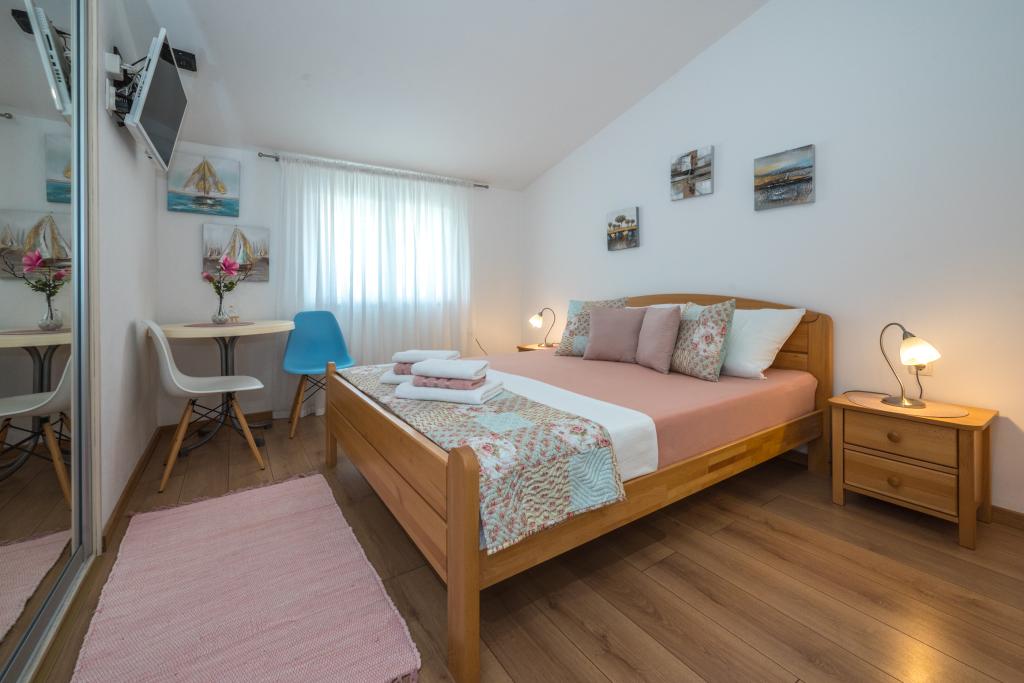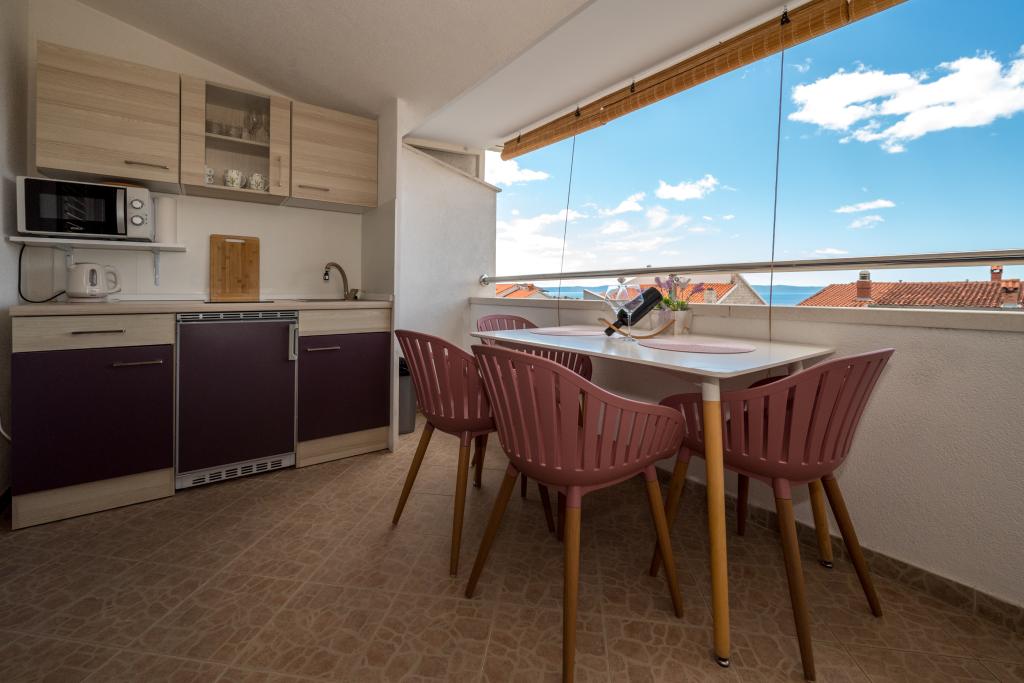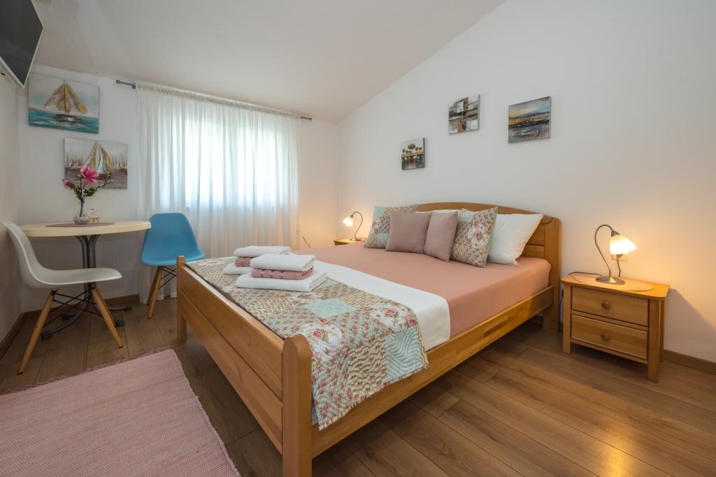 Pokoje jsou úhledné, moderní, dobře vybavené a nacházejí se ve druhém patře rodinného domu, před kterým se nachází dvůr pro parkování aut hostů. Samotný dům se nachází v krásné, velmi turistické části Makarské, asi 90 m od městské pláže a do 200 m od ní se nachází 8 hotelů. Hostitel má dlouholeté zkušenosti v cestovním ruchu. Ve vzdálenosti 500 m od domu se nachází tenisové centrum a aquapark, 800 m hlavní městský park se sportovním a rekreačním zařízením a 1000 m začátek centra města. Ve 100 m se nachází potápěčské centrum a ve stejné vzdálenosti hotel Biokovka, který nabízí kryté bazény, sauny, posilovny, fyzioterapii a masáže. Mezi zajímavosti v okolí patří Muzeum mušlí ve městě, Přírodní park Biokovo se slavnou promenádou Skywalk, Červené a Modré jezero v Imotském údolí, turistické výlety lodí na ostrov a do města Korčula a slavná pláž Zlatni rat na ostrově Brač.