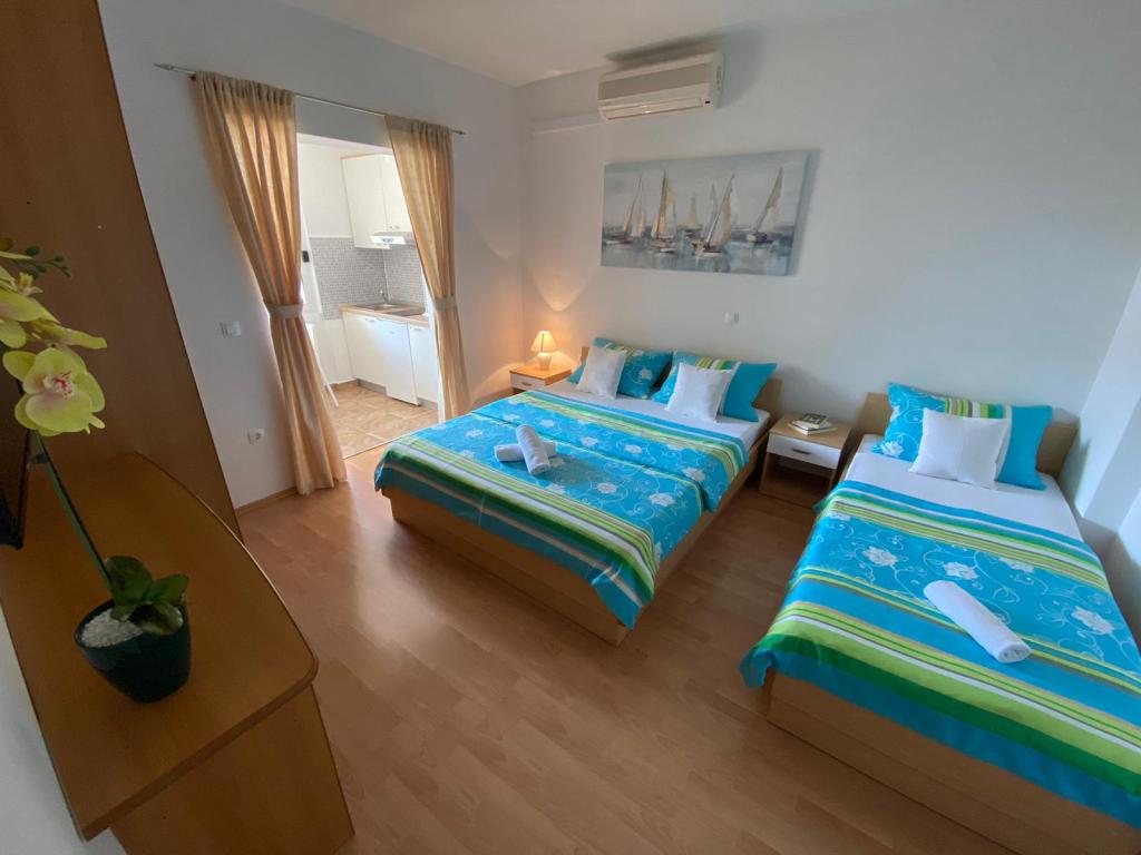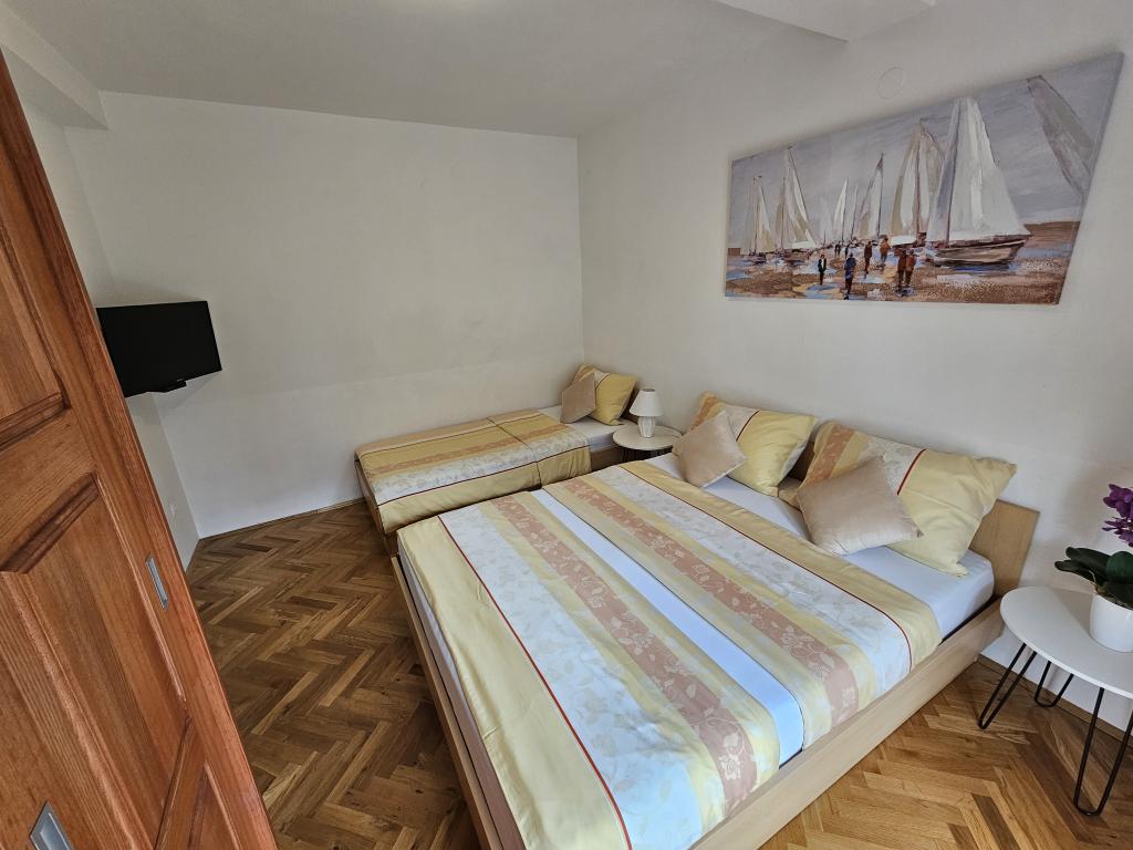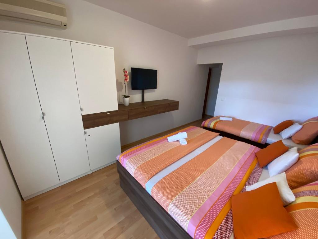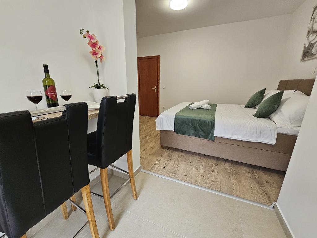 Apartmány Kovač jsou moderně vybavené apartmány nacházející se v centru města Makarska. Městská pláž je vzdálená 250 metrů (méně než 5 minut pěšky) a do centra města se dostanete za necelých 15 minut procházkou po krásné promenádě podél, podle našeho názoru, nejkrásnější pláže na světě. Restaurace, pekárna a lékárna jsou v dosahu a nejbližší obchod pro každodenní nákupy je jen 50 metrů od bytu. Každý apartmán má vlastní koupelnu, plně vybavenou kuchyň, balkon, klimatizaci a veškeré potřebné vybavení, aby se naši hosté cítili jako doma. Na severní straně domu se nachází garážový komplex, takže každý host má zaručeno bezplatné kryté parkovací stání, ze kterého může kdykoli volně vjíždět a vyjíždět. Celá rodina se již řadu let zabýváme cestovním ruchem a pronájmem a doufáme, že budeme mít příležitost vás ubytovat v našem zařízení, kam přijedete jako hosté a odjedete jako přátelé.