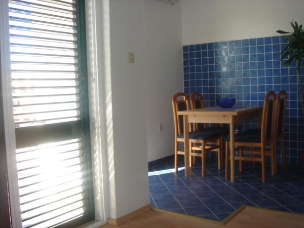 Opravdu skvělé!!! Vřele doporučuji! Komfortní, plně vybavený dvoupokojový byt s nádhernou velkou terasou, dům je na skvělém místě, jen 50m od pláže, bez lezení na pěší zóně, nádherný velký dvůr, parkovací místo... Ideální pro rodinnou dovolenou!