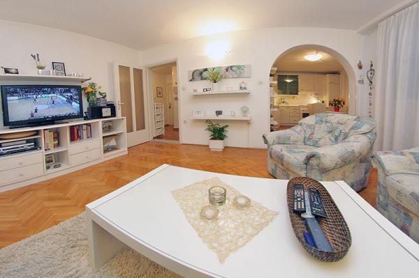 Nabízíme apartmá se dvěma ložnicemi pro čtyři osoby, v centru města Makarska, a od centrální pláže 80 metara.Apartman se nachází ve třetím patře budovy, která se nachází v klidném prostředí, jsou vybaveny klimatizací, TV se satelitním příjmem, bezplatné Wi- FI internet, pračka, myčka nádobí, nádobí ...
