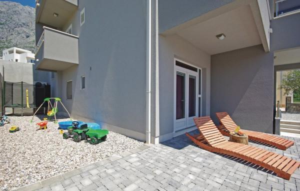Apartmány se nacházejí v klidné obci Veliko Brdo. Nabízíme klimatizované pokoje s TV se satelitním příjmem a balkon s panoramatickým výhledem na Jaderské moře. Nové moderní apartmány s bezplatným Wi-Fi připojení na internet mají dobře vybavenou kuchyň, ložnici a koupelnu. Apartmány se nacházejí v nově postaveném domě. Parkování je zdarma, a nejbližší obchod potraviny je 300 metrů. Centru města Makarska, kde je hlavní veřejná pláž, trajektového přístavu a autobusové nádraží, je 3 km daleko od letoviska.