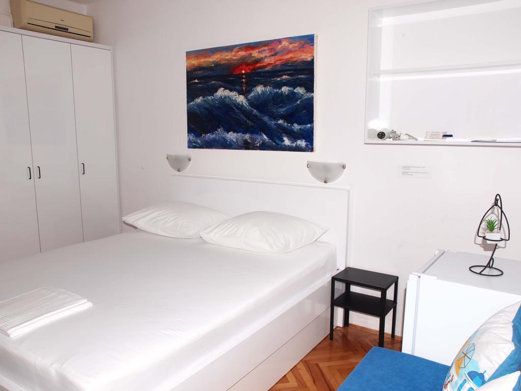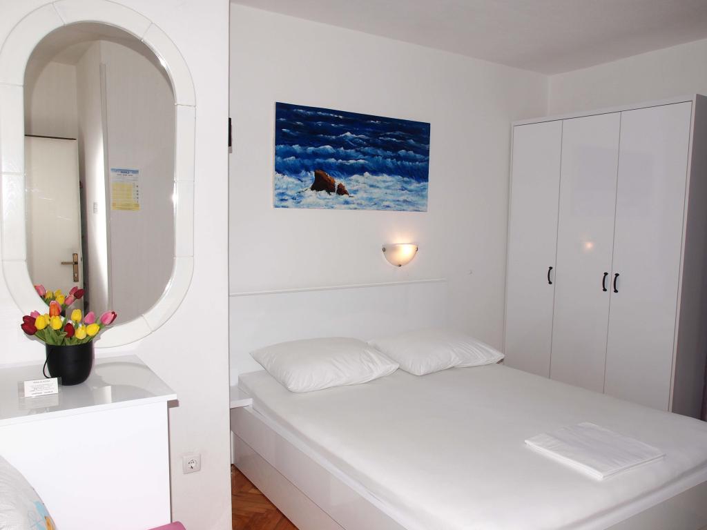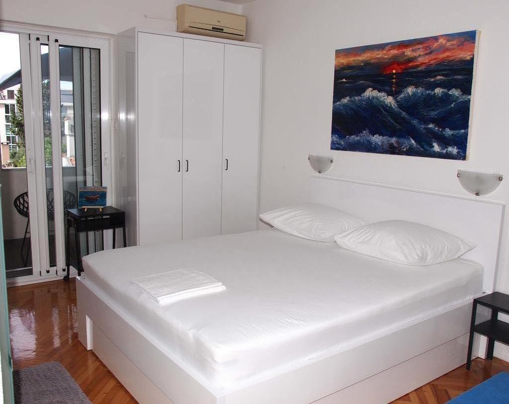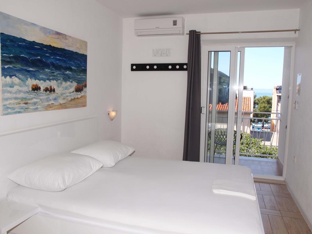 Nové a moderně vybavené apartmány s výhledem na moře se nacházejí v nejklidnější a nejatraktivnější části Makarské mezi hotelem Places-Dalmacija a hotelem Biokovka. Vzdálenost od moře a písečné pláže 50 m. Krásná promenáda obklopená borovicemi vás za 10 minut dovede do centra města. Podél promenády se nachází řada restaurací a zajímavých zařízení. Hosté mají k dispozici 4 ubytovací jednotky. Dvě identická studia v 1. patře a dva identické apartmány ve 2. patře rodinného domu. Do apartmánu je možné přidat přistýlku pro dítě. Všechny ubytovací jednotky mají balkony. Ve všech ubytovacích jednotkách jsou kuchyně oddělené od spací části. Apartmány mají vlastní venkovní vchody, což umožňuje naprosté soukromí. Ubytovací jednotky nejsou vystaveny ulici a poskytují hostům klid před hlukem z ulice. Cena zahrnuje parkování, internet, klimatizaci a pobytovou daň.