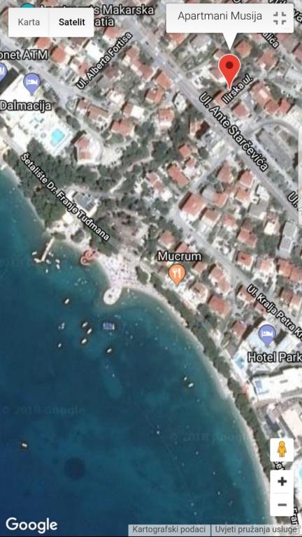 Apartmány Musija se skládají z 5 ubytovacích jednotek ve stejné budově s hlídaným parkovištěm. Plně a moderně vybavené apartmány se nacházejí v klidné části Makarské, 5 minut chůze od pláže a 10 - 15 minut chůze do centra města. V bezprostřední blízkosti jsou obchody, restaurace a další doplňková zařízení zábavného a rekreačního charakteru pro nezapomenutelnou dovolenou.