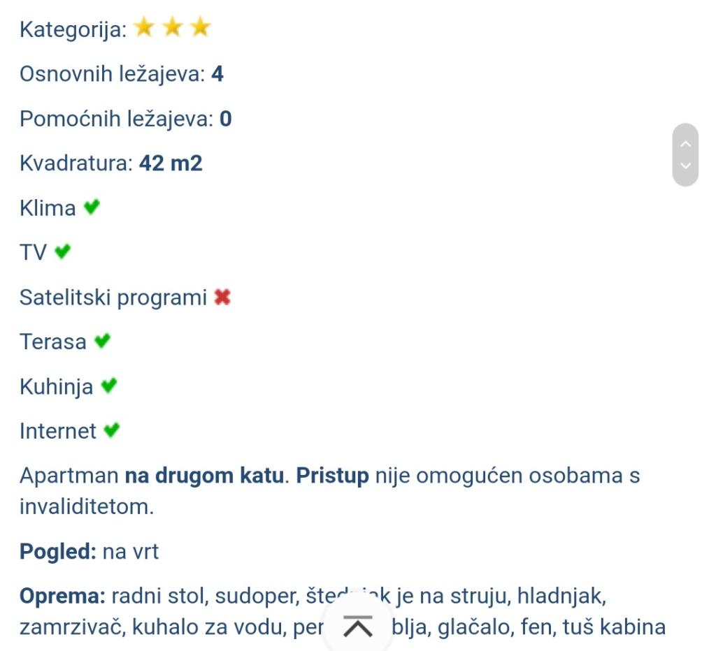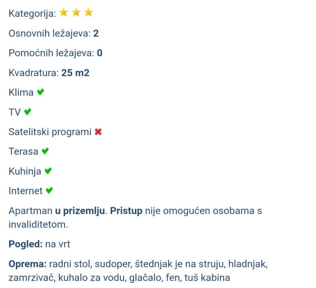 Všechna chvála naší milé bytné, jsou velmi milé a vždy vám k službám. Co se týče bytu, vše je uklizené, čisté a vyzdobené, majitelka každé ráno uklízí, myje dvůr a schody, vše na jedničku. Byli jsme tam loni, jsme tady znovu letos a snad i příští rok. Doporučil bych všem, kteří chtějí dovolenou a velmi příjemnou komunikaci s majitelkou, to je naše Musija.