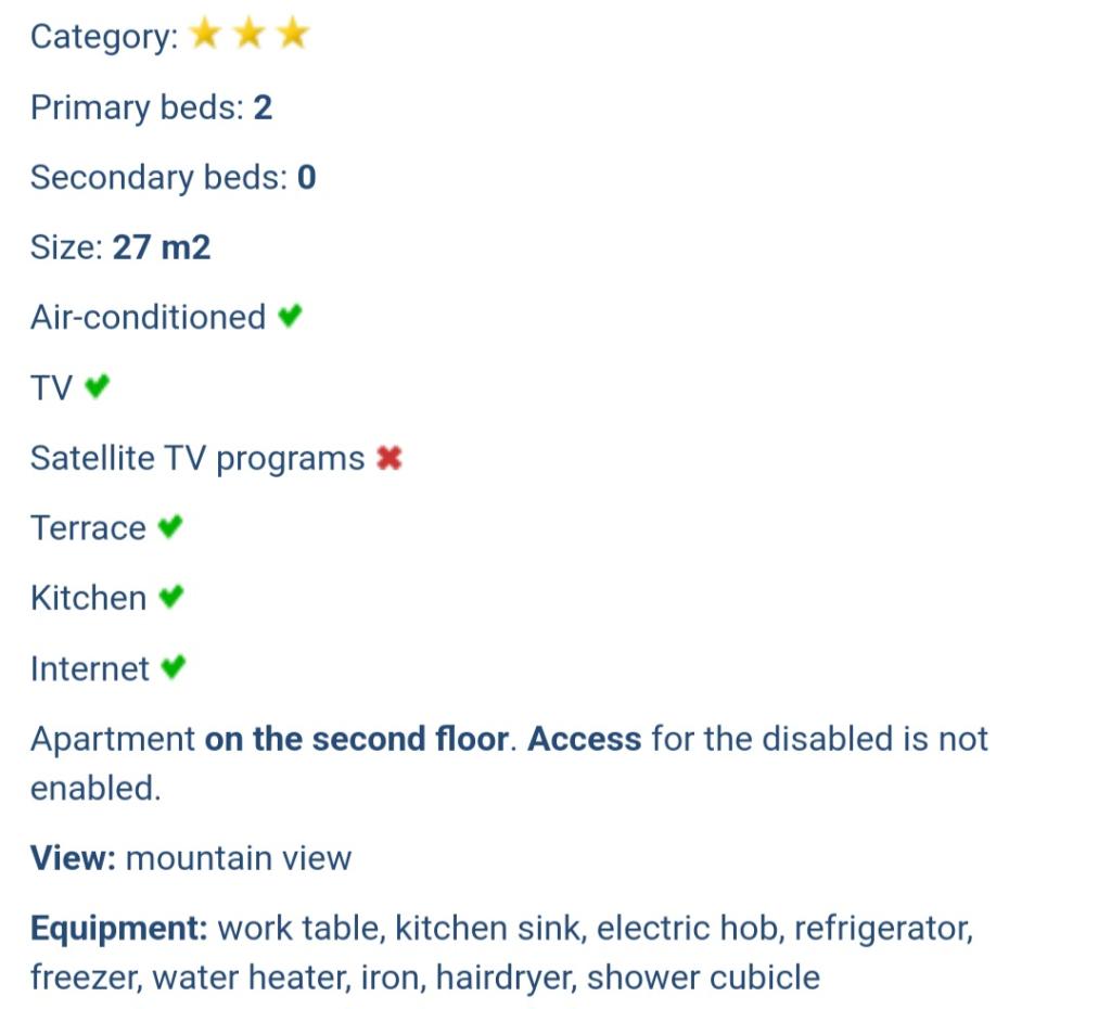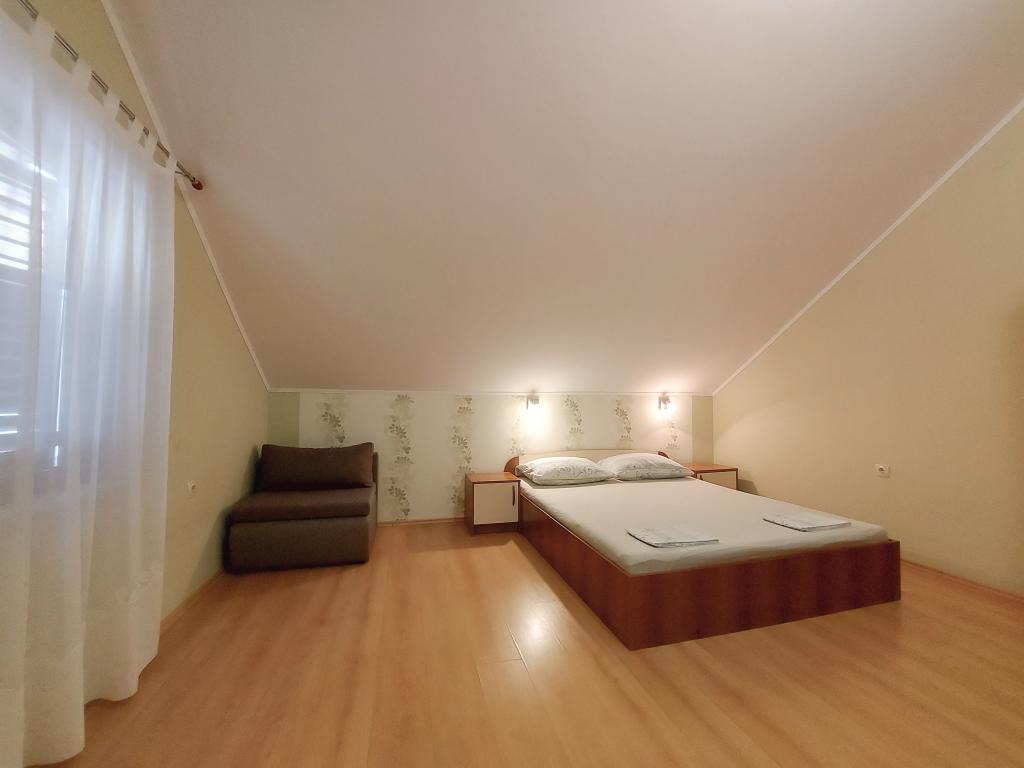 Bydleli jsme v bytě společně s dětmi. Je to extrémně čisté, hospodyně jsou velmi vstřícné a profesionální. Apartmány mají vlastní bezplatné parkoviště, v blízkosti je stánek s ovocem, několik obchodů, lékárna, pekárna, restaurace. 5 minut snadné chůze na městskou pláž s několika kroky a minimálním stoupáním, pokud se vydáte oklikou. Byt vypadá jako na obrázcích. Vzhledem k tomu, že je velmi blízko hlavní silnice, pokud nezavřete okna, můžete slyšet auta. Na závěr jsme dostali jako dárek i pálenku. Všechna doporučení!