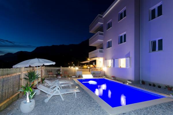 Apartmán na východní části města Makarska, se nachází v nově postavených domů, zavřou se další byty, bazén je určen pro použití hosty jednoho apartmánu, parkování zdarma, všechny pokoje jsou klimatizované, el.roštilj. V areálu se nachází 10 min. chůze od centra města, ve stejné vzdálenosti od pláže (město).