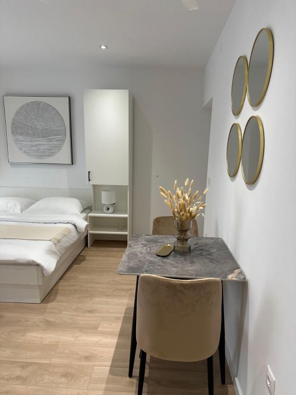 Kompletně zrekonstruované apartmány Olga 1 se nacházejí v Makarské, v oblasti "Plaža", pouhých 50 metrů od moře a pláže. Nabízíme 3 apartmány umístěné v 1. patře domu. Nabízíme také apartmán pro 4 osoby, který se nachází v přízemí. Všechny apartmány mají klimatizaci, vlastní koupelnu, vybavenou kuchyň, SMART-TV/SAT, WiFi a balkon, kde můžete trávit svůj čas. Soukromé parkoviště se nachází ve dvoře před domem. Vzdálenost k nejbližšímu supermarketu je 100 metrů a restaurace a kavárny jsou vzdálené 50 metrů a nacházejí se na pláži. Vzdálenost od centra města je 5 minut chůze. Apartmány se nacházejí v klidném a tichém prostředí.