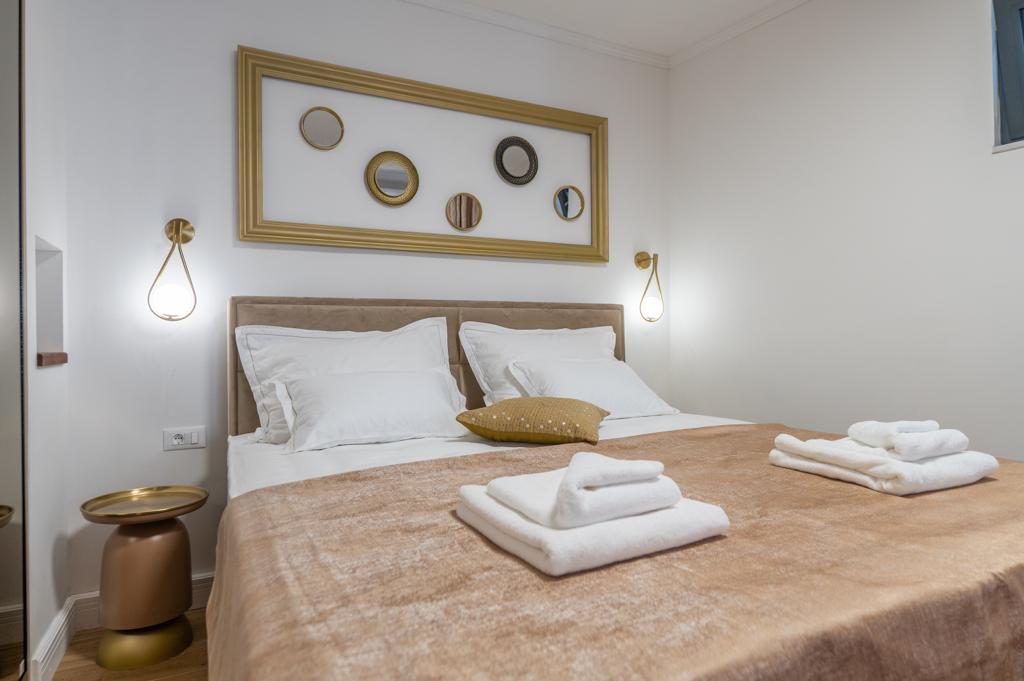 Apartmán "Petra" a Apartmán Rustic se nachází ve velmi atraktivní lokalitě v centru města s minimálním hlukem města. Apartmány jsou obklopeny veškerým důležitým vybavením pro jednoduchý a příjemný pobyt. Městské vlakové nádraží je jen dvě stě metrů od apartmánů. Na stejné ulici jsou dva supermarkety a naproti apartmánům je slavná drogerie "DM" Ve stejném směru jsou četné restaurace, které nabízejí tradiční a mezinárodní kuchyni, a co je nejdůležitější, pláž je naproti apartmánům. Byt na Staroměstském náměstí je samostatný a nachází se v jiné lokalitě, přesněji v samém srdci města. Kačićovo náměstí.