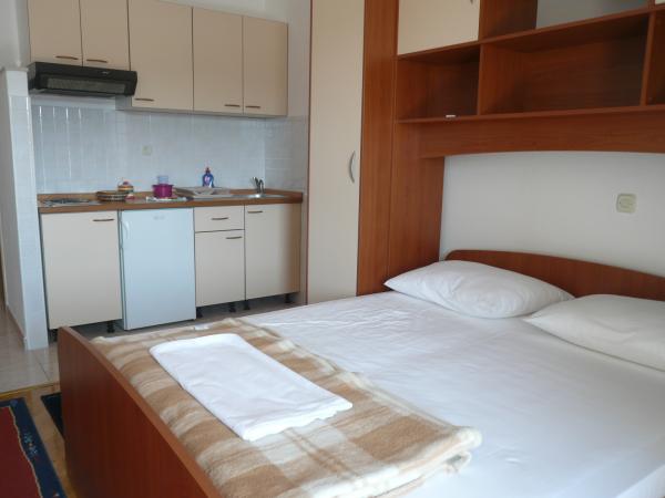 Apartmány se nacházejí ve východní části města, 5 minut chůze od centra a 15 minut od písečné pláže. V blízkosti domu se nachází supermarket, kavárny, nemocnice, lékárna, sportovní centrum atd. Nabízíme studio apartmány pro 2 osoby. Všechny apartmány jsou klimatizované a mají SAT TV a bezplatné bezdrátové připojení k internetu a všichni hosté mají k dispozici parkování před domem. Ceny se liší v závislosti na apartmánu a datu příjezdu. Těšíme se na Váš příjezd.