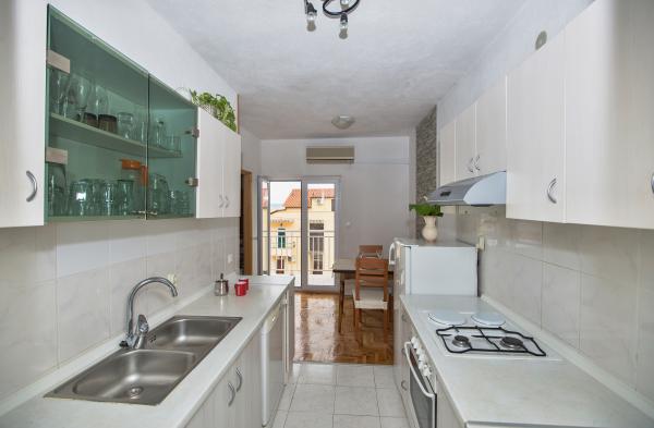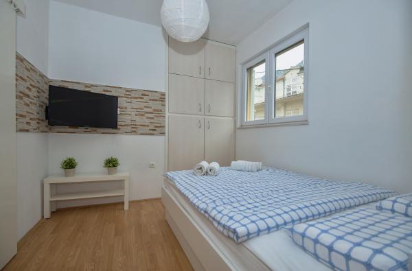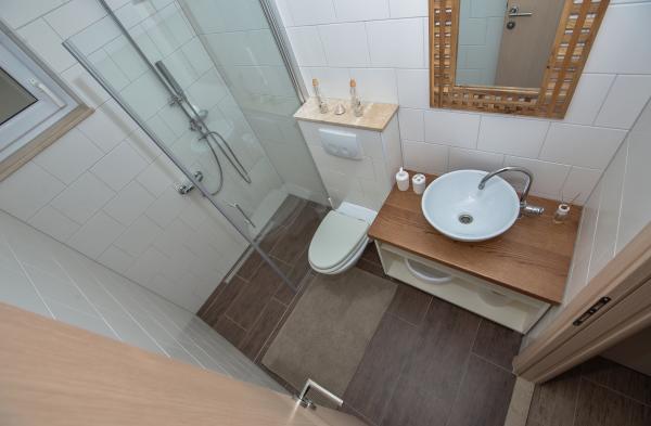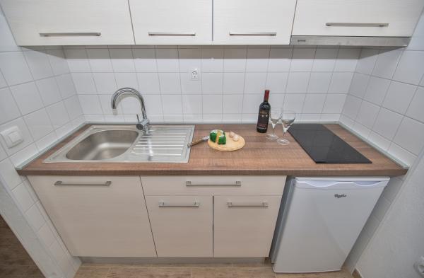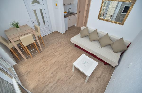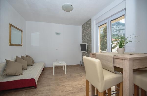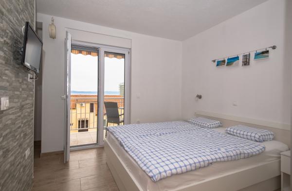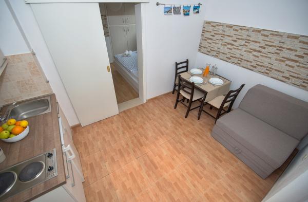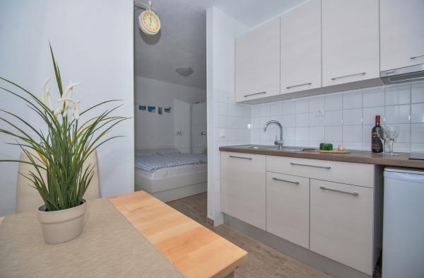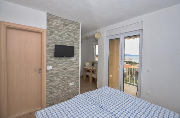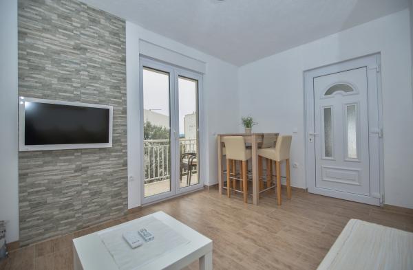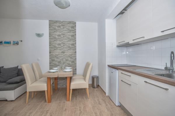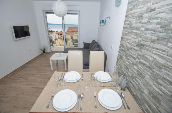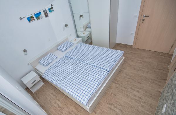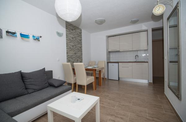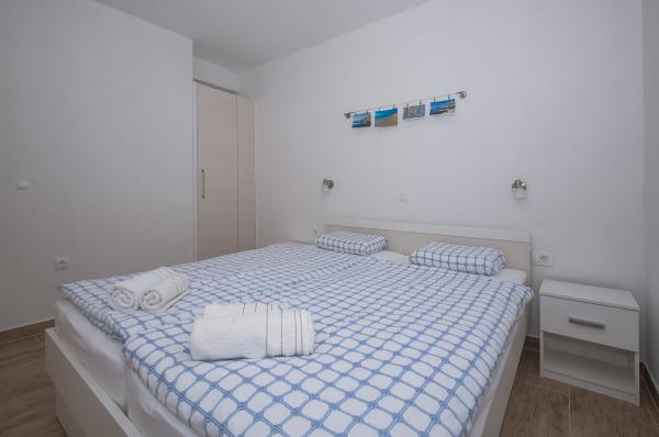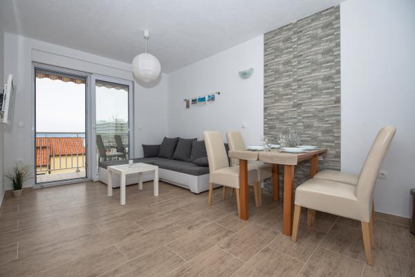 Moderní apartmány s krásným výhledem na moře se nachází v klidné části obce a poskytují kompletní odpočinek a relaxaci. Apartmány mají upravené nádvoří s možností parkování a jsou ideální pro všechny hosty (2 (2), dospělé, rodiny s dětmi, pro mladé). Zdobené pláž je menší než 200 metrů, zatímco na prodejně potravin je za 1 minutu.