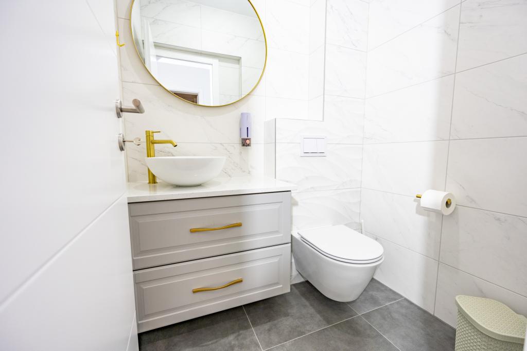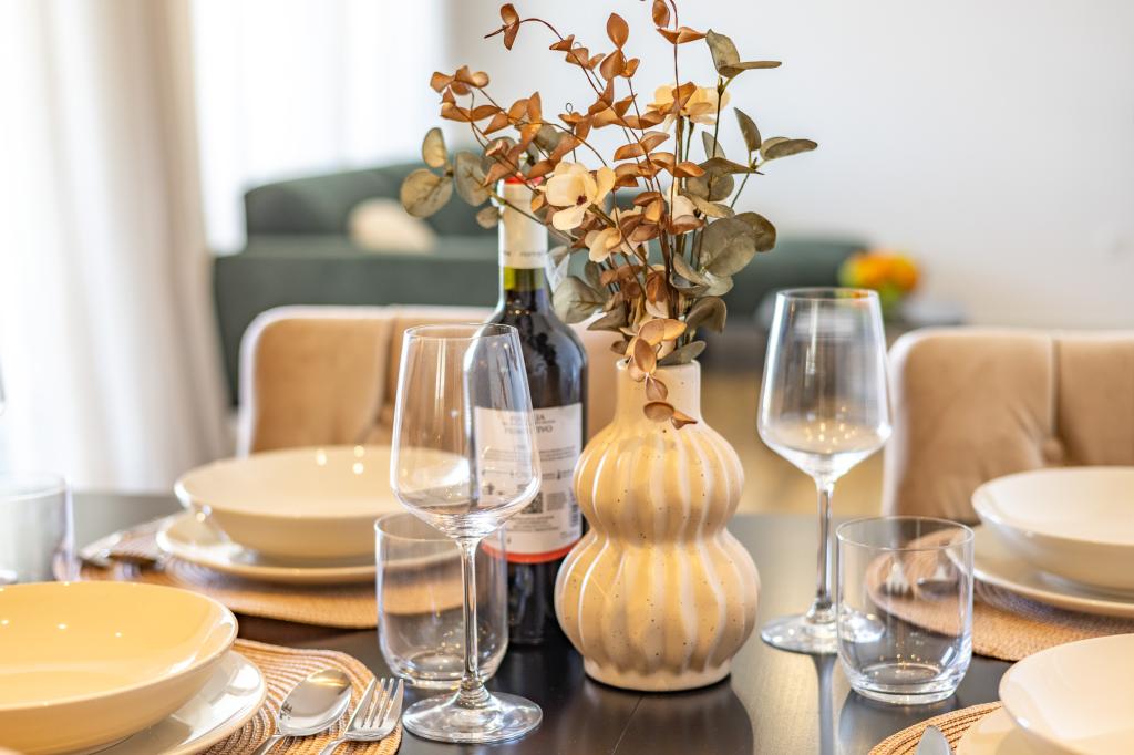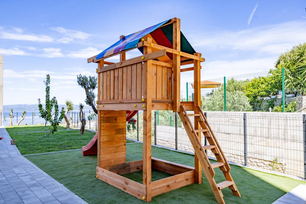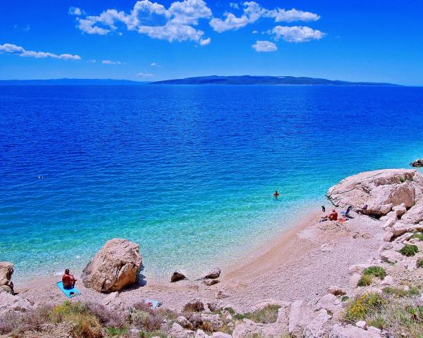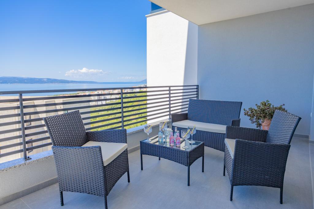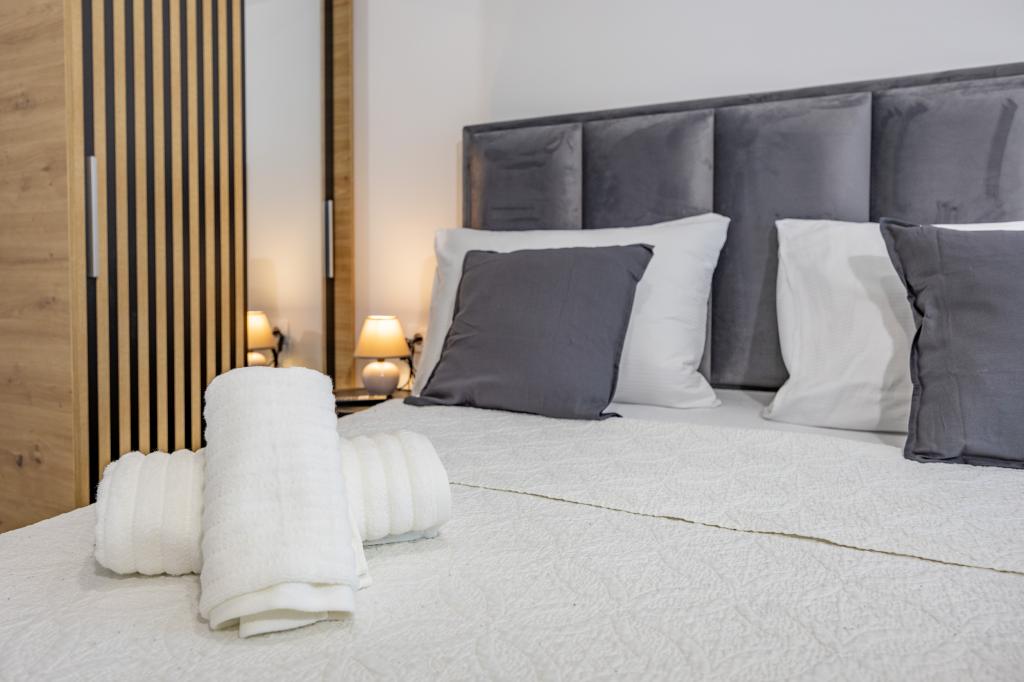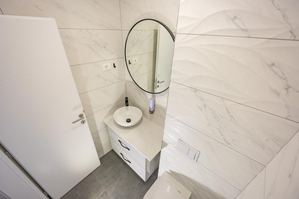 Každý apartmán vyzařuje moderní design a nově zrekonstruovaný interiér. V prostorném obývacím pokoji, zařízeném vkusným nábytkem a moderními detaily, se budete cítit jako doma. Otevřený koncept přirozeně propojuje obývací pokoj s plně vybavenou kuchyní, kde na vás čekají elegantní pracovní desky, kvalitní spotřebiče a veškerý prostor potřebný k přípravě vašich oblíbených jídel. Obývací část se otevírá na příjemný balkon - ideální místo pro ranní kávu nebo večerní relaxaci se sklenkou vína a nezapomenutelným západem slunce nad Jadranem. Každý apartmán má dvě pohodlné ložnice s manželskými postelemi, vybavené měkkým ložním prádlem a dostatkem úložného prostoru, jednu moderní koupelnu a další toaletu. Apartmány jsou klimatizované a plně vybavené: TV/SAT, internet, pračka, myčka nádobí, kávovar a vše, co potřebujete pro příjemný a bezstarostný pobyt.