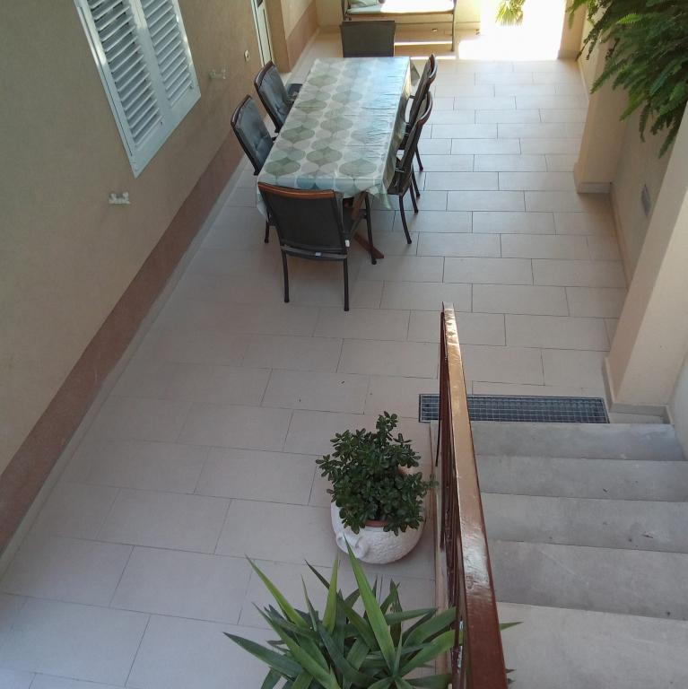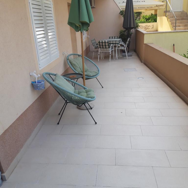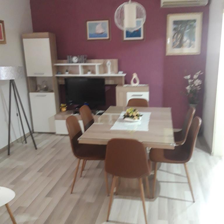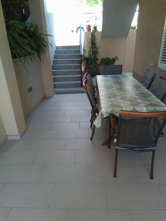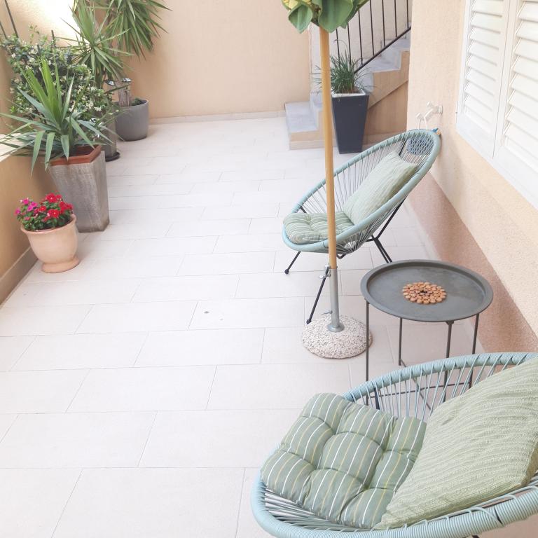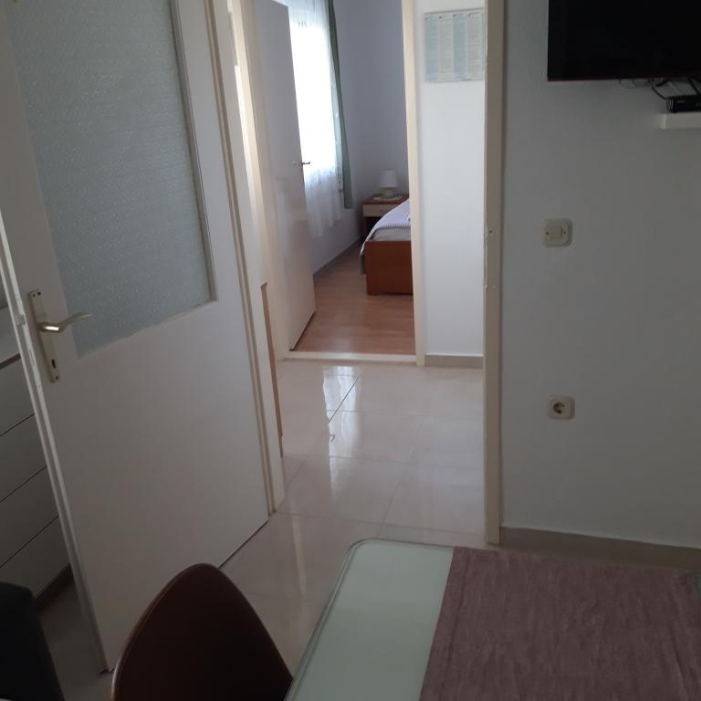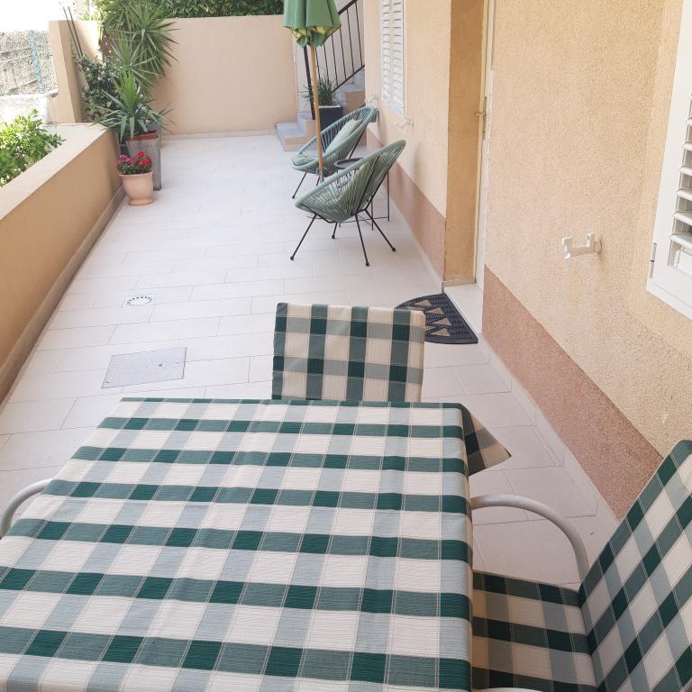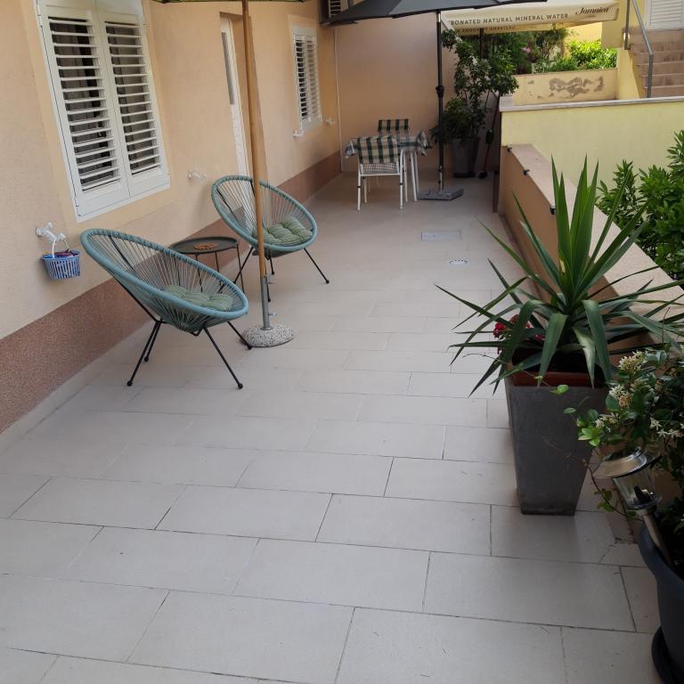 Naše apartmány se nacházejí v rodinném domě, který se nachází pouhých 15-20 minut chůze od hlavní městské pláže, 15 minut chůze od centra města a autobusového nádraží. Nejbližší obchod s potravinami a nejbližší restaurace jsou vzdáleny 30 metrů. Apartmán A6 je velký třípokojový apartmán se dvěma pokoji s balkonem (klimatizace) a 1 severním pokojem (ventilátor), plně vybavený, velká hala, dvě koupelny (pračka, myčka nádobí, kávovar, varná konvice), kuchyň, jídelna a obývací pokoj (klimatizace), terasa, přístup po schodech, parkování. Vítejte. Apartmán A2 plus 1, plně vybavený apartmán, který se nachází na jižní straně rodinného domu, přístup po schodech, pokoj (manželská postel plus křeslo-přistýlka pro jednu osobu), rozkládací pohovka v kuchyni, koupelna (pračka), hala, kuchyň s jídelnou (myčka), velká terasa, samostatný vchod, bez přítomnosti ostatních hostů. Apartmán A2+1 nemá parkování. Vítejte.