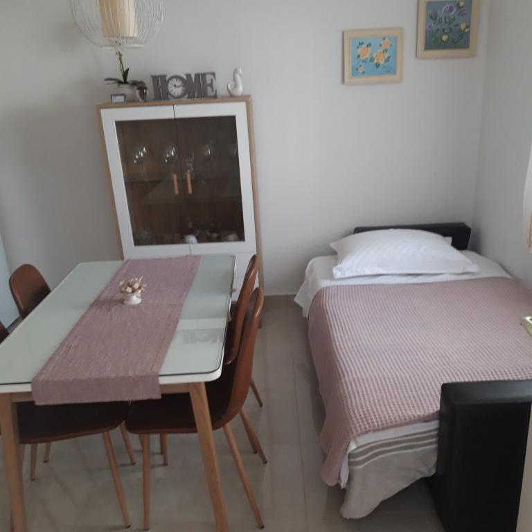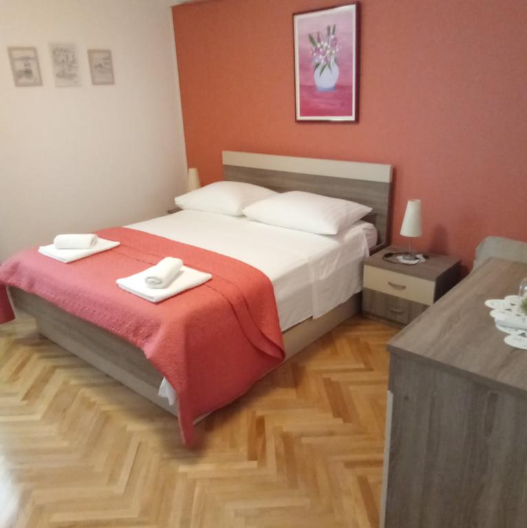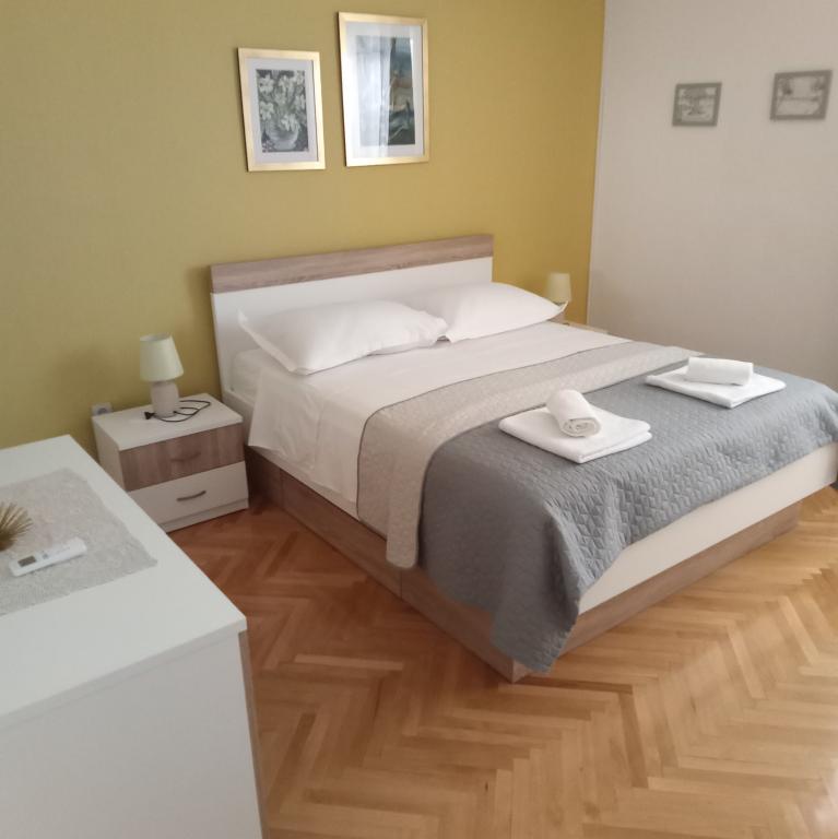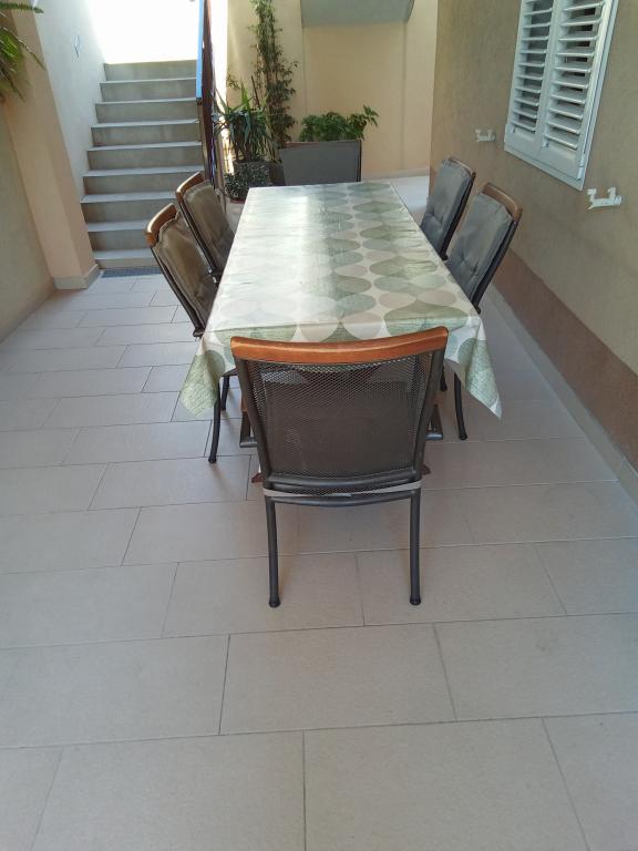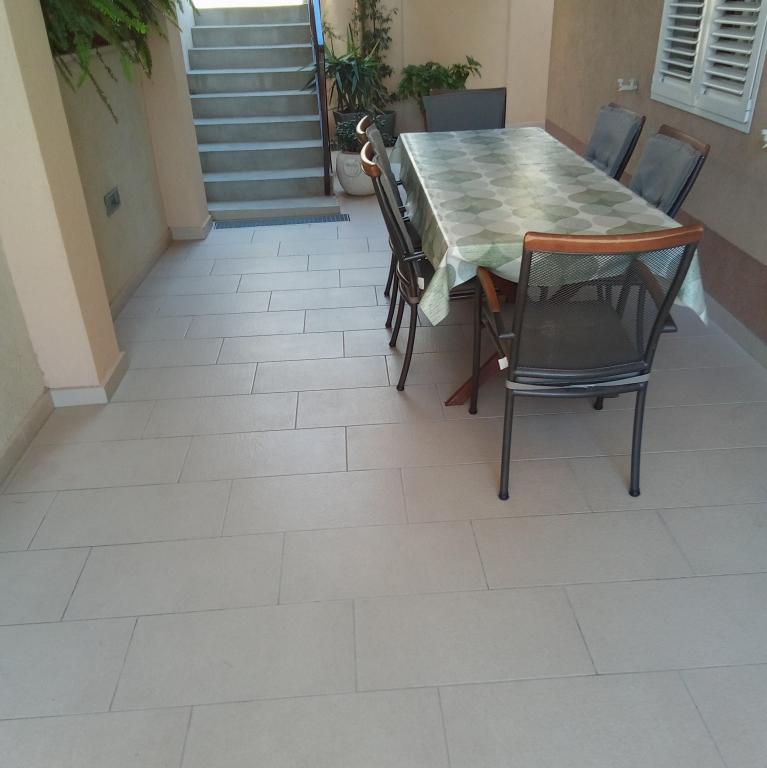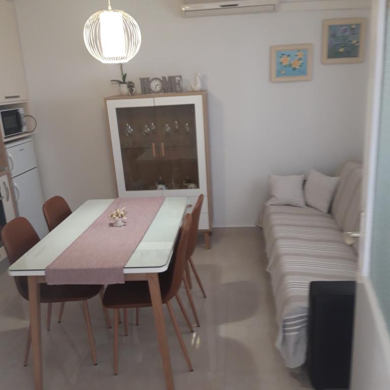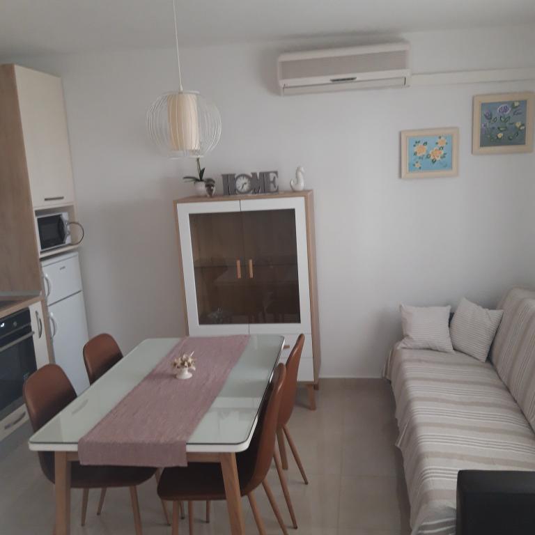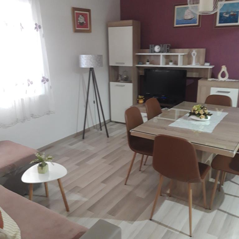 Naše apartmány se nacházejí v rodinném domě, který se nachází pouhých 15-20 minut chůze od hlavní městské pláže, 15 minut chůze od centra města a autobusového nádraží. Nejbližší obchod s potravinami a nejbližší restaurace jsou vzdáleny 30 metrů. Apartmán A6 je velký třípokojový apartmán se dvěma pokoji s balkonem (klimatizace) a 1 severním pokojem (ventilátor), plně vybavený, velká hala, dvě koupelny (pračka, myčka nádobí, kávovar, varná konvice), kuchyň, jídelna a obývací pokoj (klimatizace), terasa, přístup po schodech, parkování. Vítejte. Apartmán A2 plus 1, plně vybavený apartmán, který se nachází na jižní straně rodinného domu, přístup po schodech, pokoj (manželská postel plus křeslo-přistýlka pro jednu osobu), rozkládací pohovka v kuchyni, koupelna (pračka), hala, kuchyň s jídelnou (myčka), velká terasa, samostatný vchod, bez přítomnosti ostatních hostů. Apartmán A2+1 nemá parkování. Vítejte.