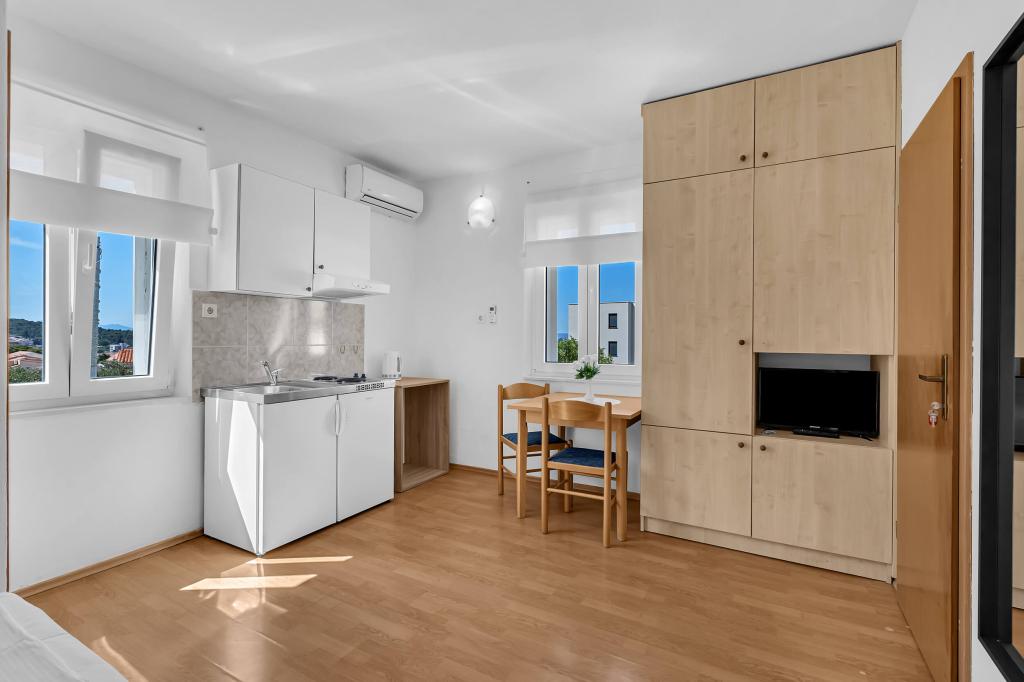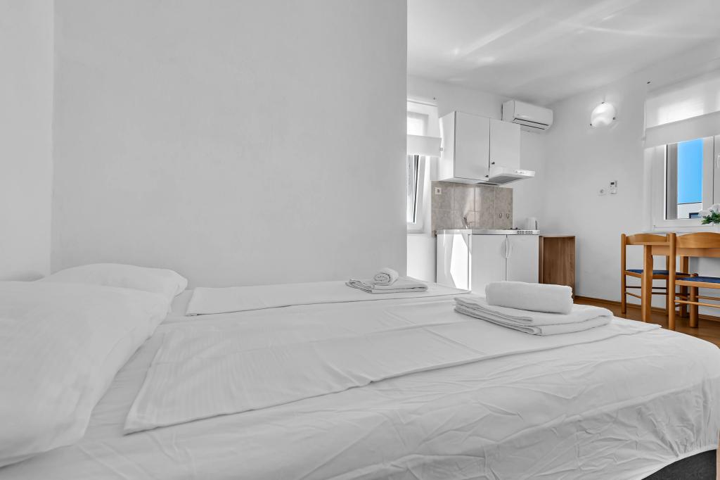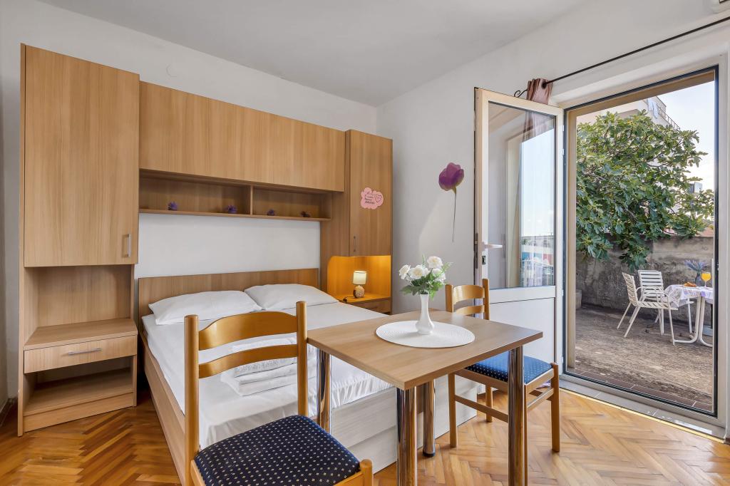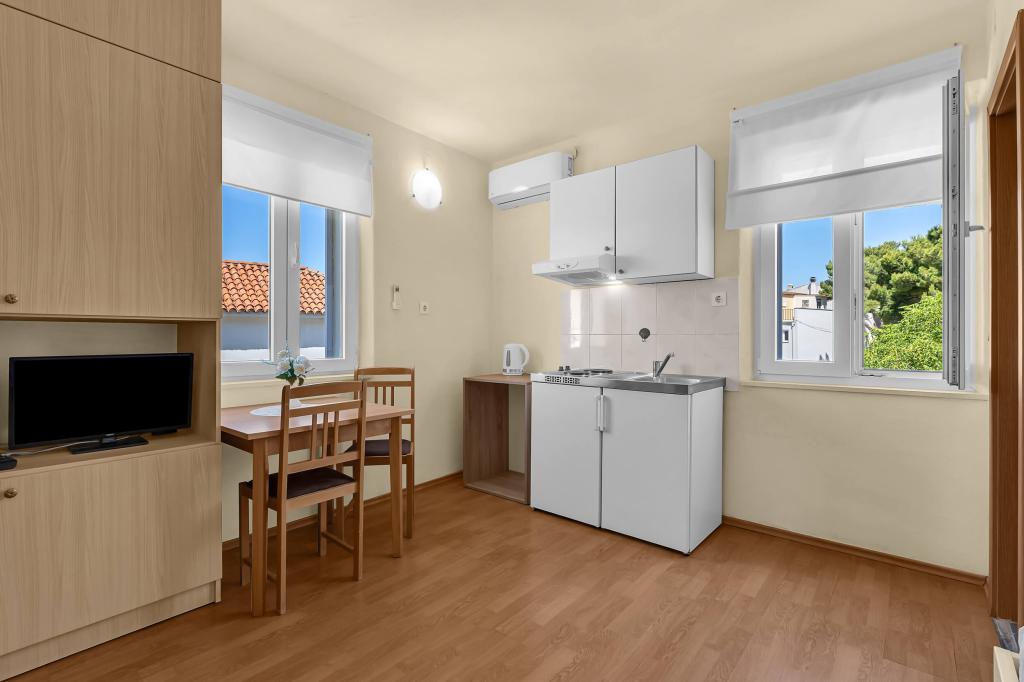 Dům se 4 studiovými apartmány. Nachází se v blízkosti všech hlavních zařízení, hlavní náměstí 300 m, trh 300 m, pláž 700 m, hlavní promenáda (riva 350 m).