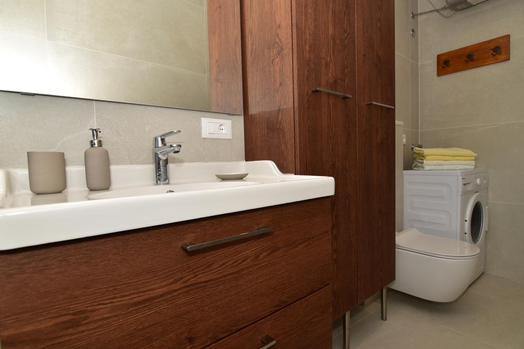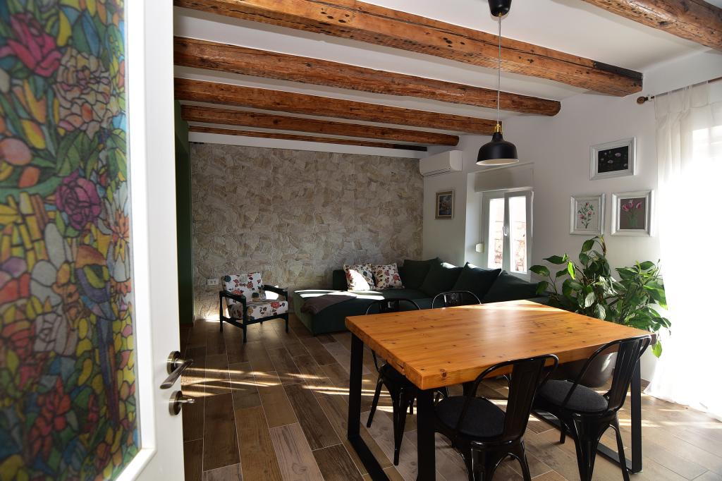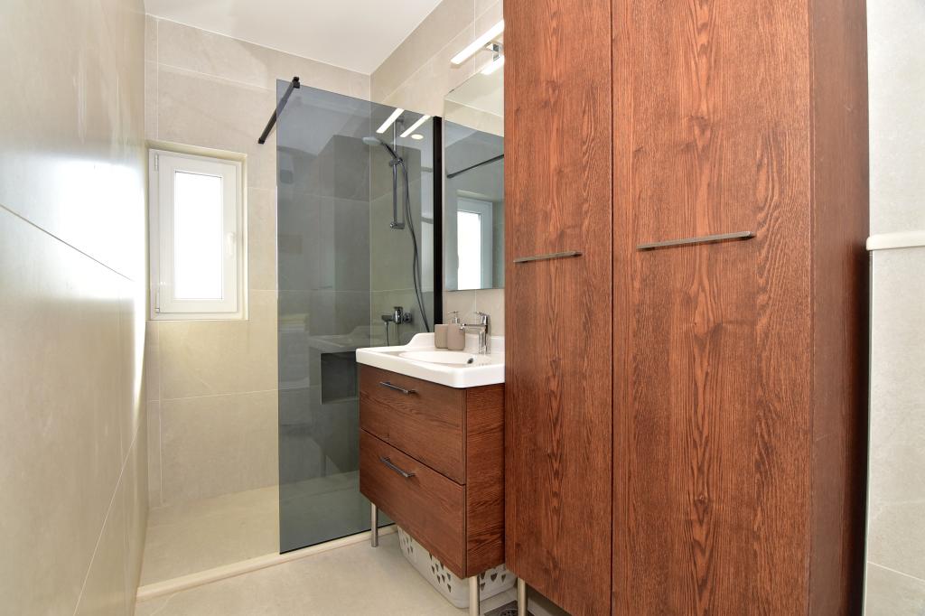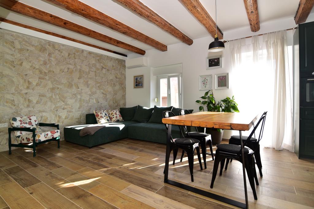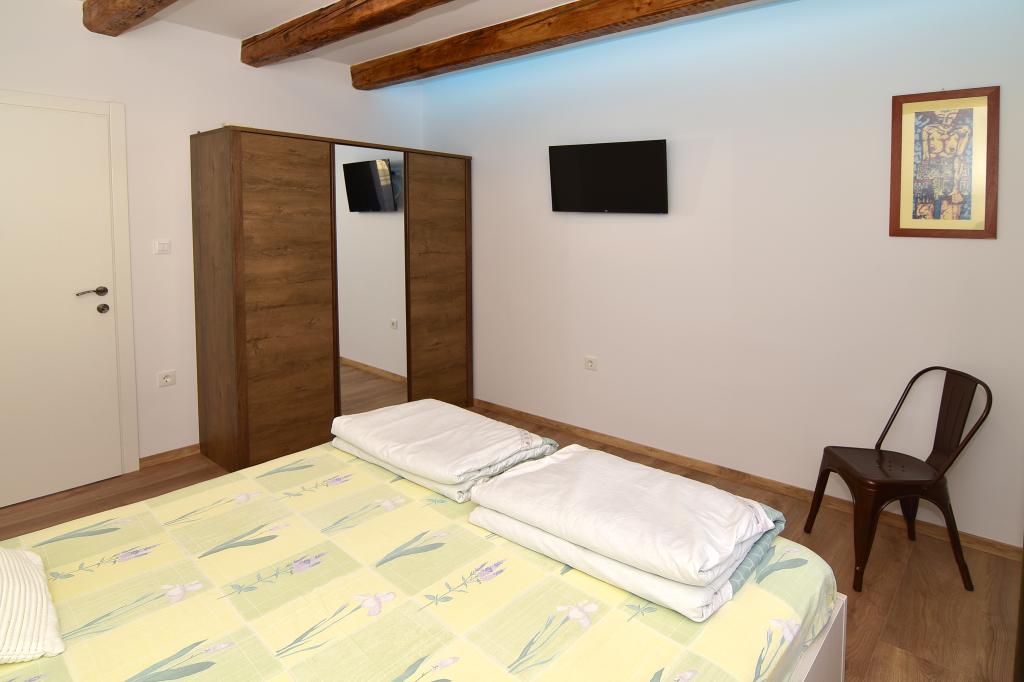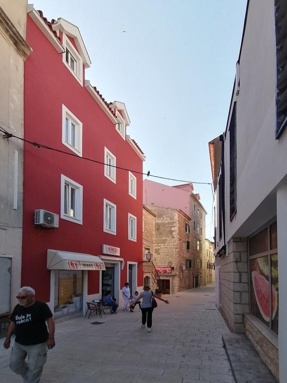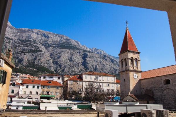 Rodinný dům se nachází v samém centru Makarské. V bezprostřední blízkosti je hlavní náměstí, kostel, tržnice, obchody, restaurace. Nábřeží je vzdálené 50 m. V domě jsou dva byty, jeden v přízemí a druhý ve druhém patře domu. Byt v přízemí má vlastní vchod z klidné strany ulice, skládá se ze dvou dvoulůžkových pokojů, kuchyně a koupelny. Vše je moderní otevřený prostor, bez dveří na pokojích, na dvou úrovních spojených řadou schodů. Jeden pokoj je ve spodním patře a druhý pokoj, kuchyň a koupelna jsou v horním patře. Kuchyň je plně vybavena veškerým potřebným kuchyňským náčiním. Byt je po kompletní rekonstrukci a vše je nové. Druhý apartmán se nachází ve druhém patře s nádherným výhledem na nábřeží a moře. I tento byt byl před dvěma lety kompletně zrekonstruován a vše je nové a moderní. Jedná se o 75 m2. Má dvě dvoulůžkové ložnice, velký obývací pokoj, kuchyň, koupelnu a balkon. Všechny pokoje jsou klimatizované