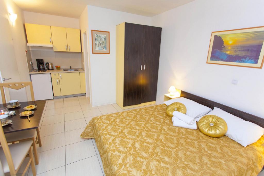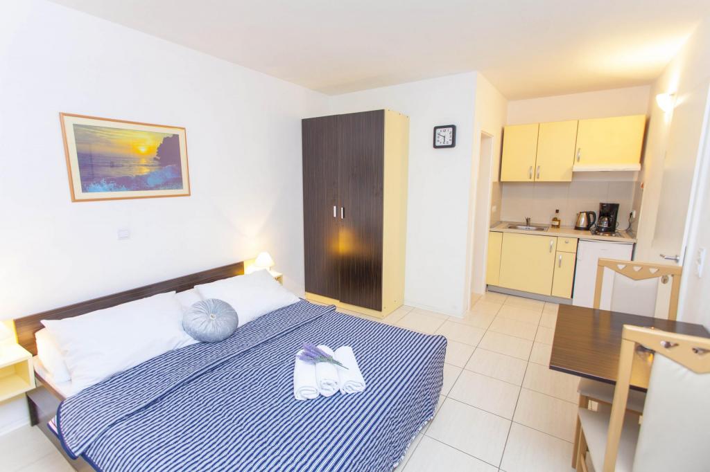 Svým hostům nabízí hotelové ubytování, které zahrnuje nejen jídlo. Příjemný personál, každodenní úklid bytů a dostupné informace o všem, co vás zajímá, vás povzbudí, abyste si užili zaslouženou dovolenou. Pokusíme se vám poskytnout možnost zapůjčení automobilu, dopravu na letiště, organizování výletů, kamkoli chcete :)