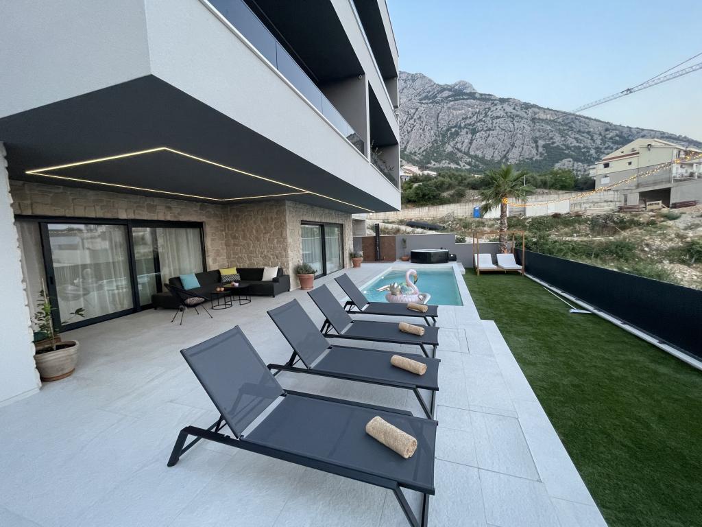 Vila 5 nabízí ubytování v Makarské s bezplatným Wi-Fi a výhledem na moře, venkovní bazén, zahradu a společný lounge. Tento apartmán nabízí bezplatné soukromé parkoviště a sdílenou kuchyň. Klimatizovaný apartmán se skládá ze 4 ložnic, obývacího pokoje, plně vybavené kuchyně s lednicí a kávovarem a 3 koupelen se sprchou a bezplatnými toaletními potřebami. Ručníky a ložní prádlo jsou zahrnuty v ceně. Vila 5 nabízí 4hvězdičkové ubytování s vířivkou a terasou.