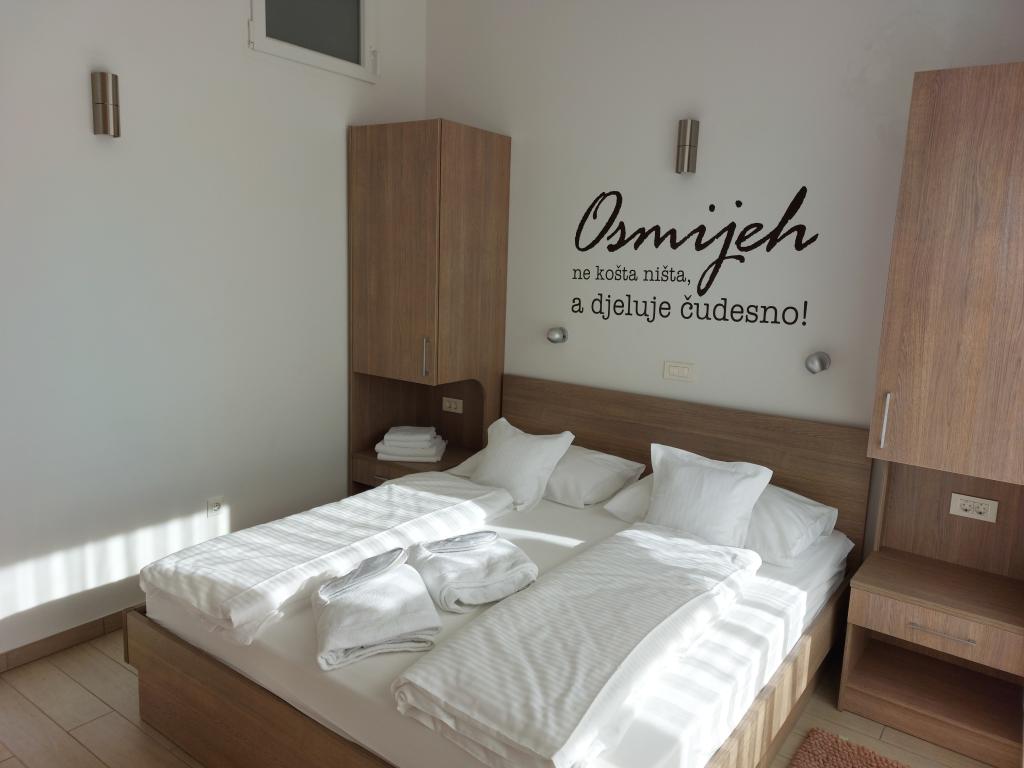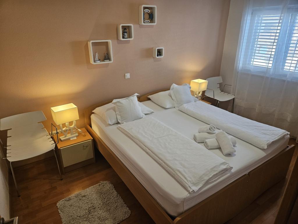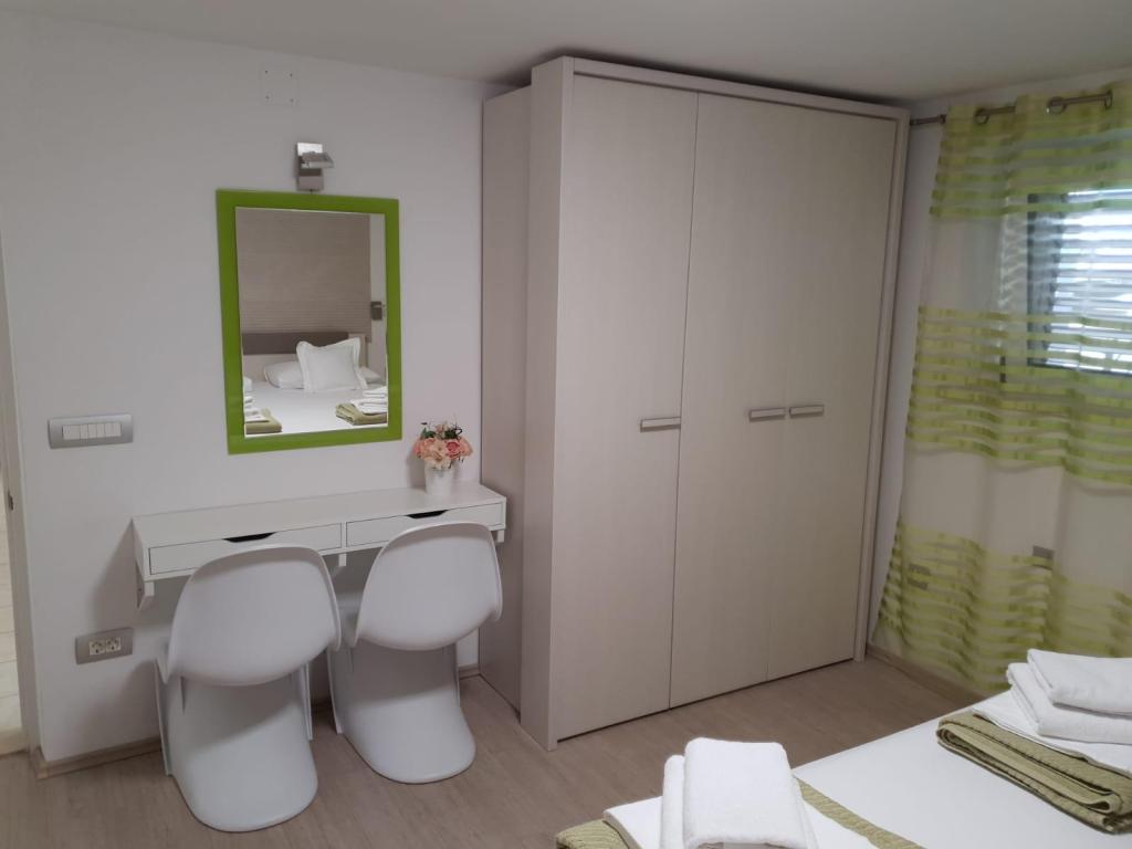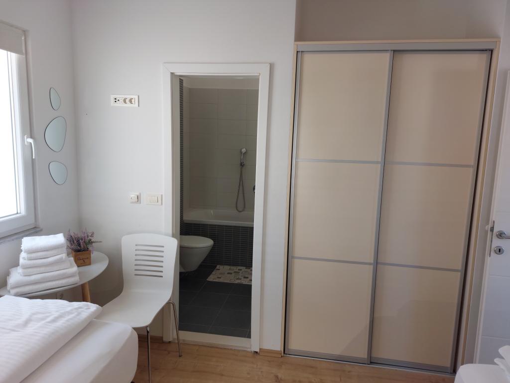 Naše apartmány jsou moderní a plně vybavené, aby byl váš pobyt co nejpohodlnější a bezstarostnější. Každý apartmán zahrnuje žehličku a žehlicí prkno, fén, kávovar na filtrovanou kávu, varnou konvici a mikrovlnnou troubu. Hosté mají také k dispozici kompletní nádobí pro přípravu a servírování jídla. Všechny ubytovací jednotky mají plochou televizi, bezplatné Wi-Fi, vnitřní i venkovní posezení a relaxační zóny. Ubytovací jednotky jsou klimatizované. Parkování je nutné rezervovat předem z důvodu omezeného počtu parkovacích míst v objektu. Při příjezdu na vás čeká čerstvé ložní prádlo a ručníky, které se mění dle dohody. Dětská postýlka je v tomto objektu k dispozici po předchozím upozornění a je zdarma. V objektu se nachází společný dvůr s posezením, obklopený středomořskými rostlinami - ideální místo k relaxaci. Objekt se nachází v klidné oblasti, ve druhé řadě od moře, jen 2 minuty chůze od pláže a deset minut snadné chůze do centra.