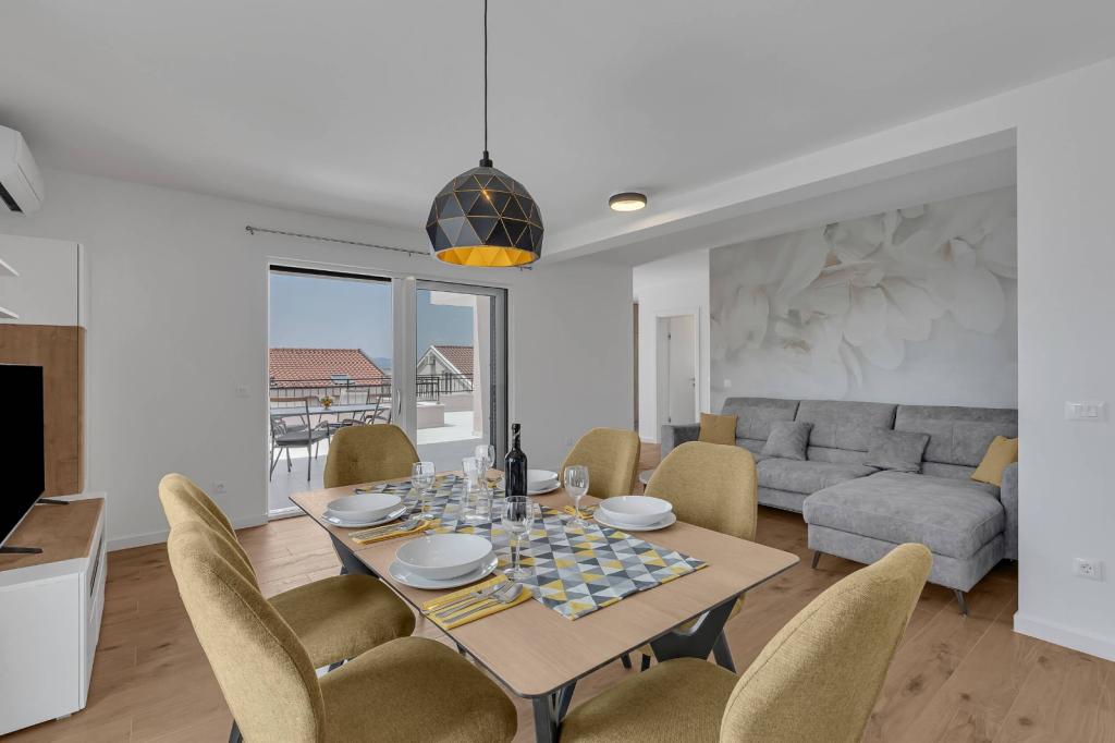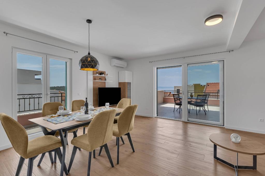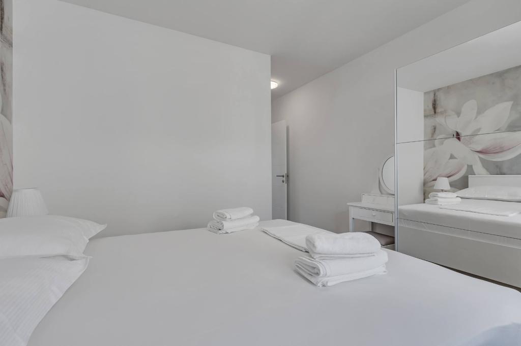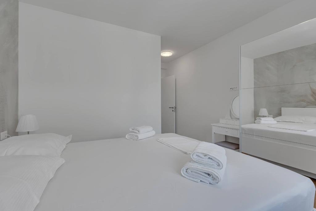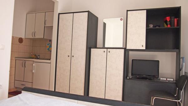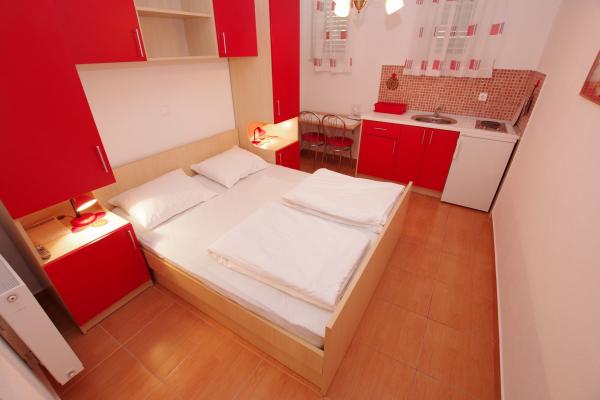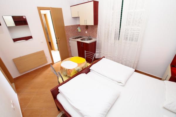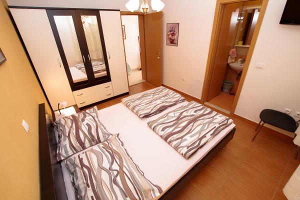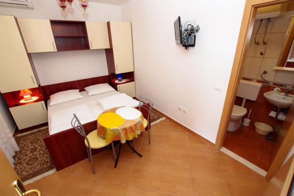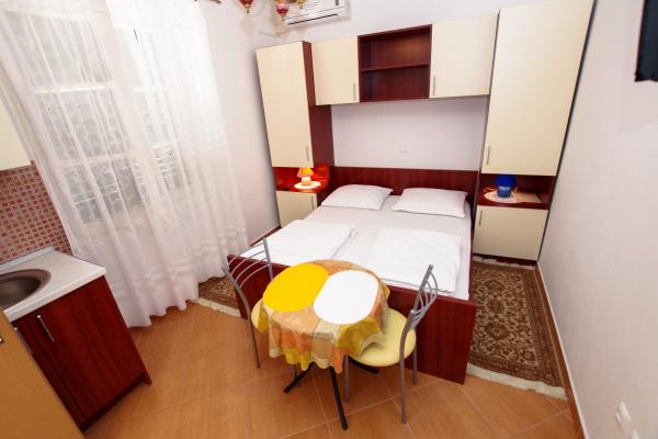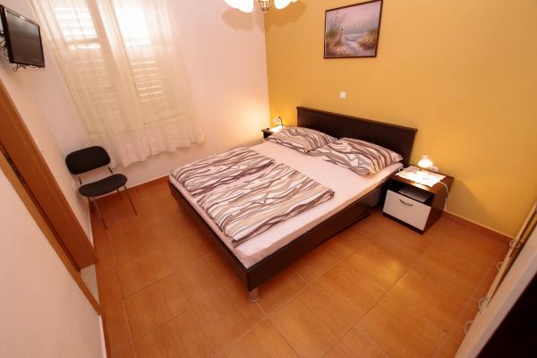 Naše ubytovací kapacity se nacházejí uvnitř domu, kde bydlíme. Kromě zabezpečeného parkování v domě jsme všem hostům poskytli televizory, klimatizaci a přístup k rychlému Wi-Fi internetu. Nacházíme se jen pár minut chůze od centra a moře a asi 10 minut chůze od pláže. V přízemí se nacházejí tři studiové apartmány pro dvě osoby a jeden pro tři osoby, zatímco v prvním patře jsou dva studiové apartmány pro dvě osoby. Ve druhém patře se nachází nově postavený apartmán pro čtyři osoby kategorie čtyři hvězdičky s rozlohou přes 90 metrů čtverečních a balkonem o rozloze přes 50 metrů čtverečních. Apartmán se skládá ze dvou ložnic, dvou koupelen, velkého obývacího pokoje s kuchyní a dvou balkonů. Je kompletně nově zařízený všemi potřebnými spotřebiči, jako je pračka a myčka nádobí, mikrovlnná trouba, lednice, tři klimatizace atd. Tento apartmán je k pronájmu od 25. 7.