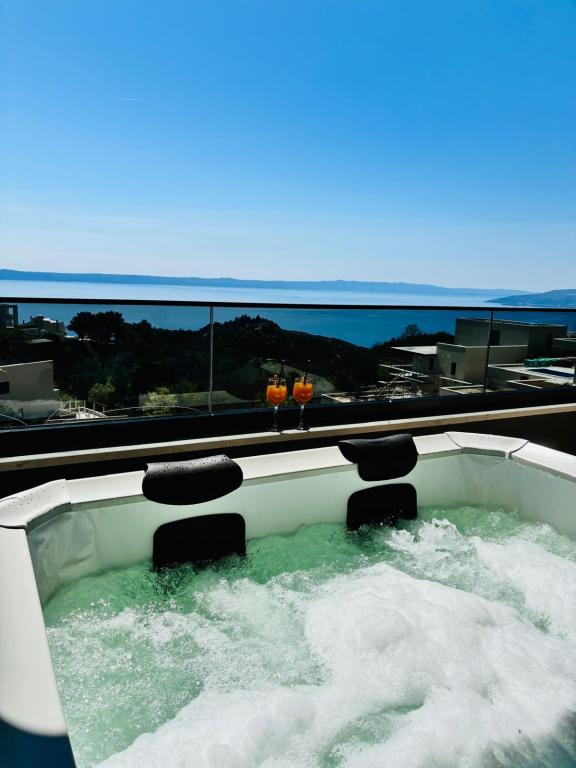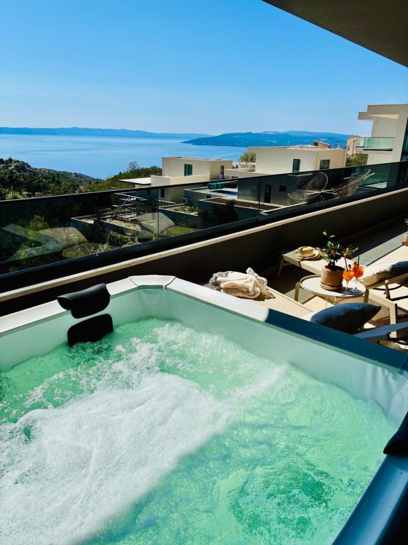 Vila 5 nabízí ubytování v Makarské s bezplatným Wi-Fi a výhledem na moře, venkovní bazén, zahradu a společný lounge. Tento apartmán nabízí bezplatné soukromé parkoviště a sdílenou kuchyň. Klimatizovaný apartmán se skládá ze 4 ložnic, obývacího pokoje, plně vybavené kuchyně s lednicí a kávovarem a 3 koupelen se sprchou a bezplatnými toaletními potřebami. Ručníky a ložní prádlo jsou zahrnuty v ceně. Vila 5 nabízí 4hvězdičkové ubytování s vířivkou a terasou.