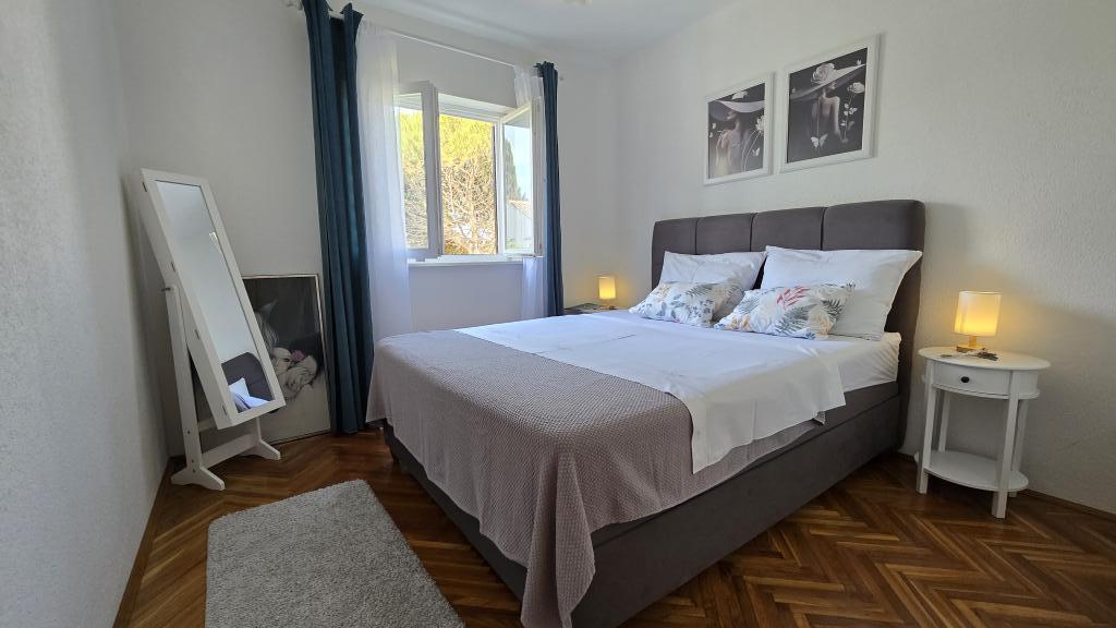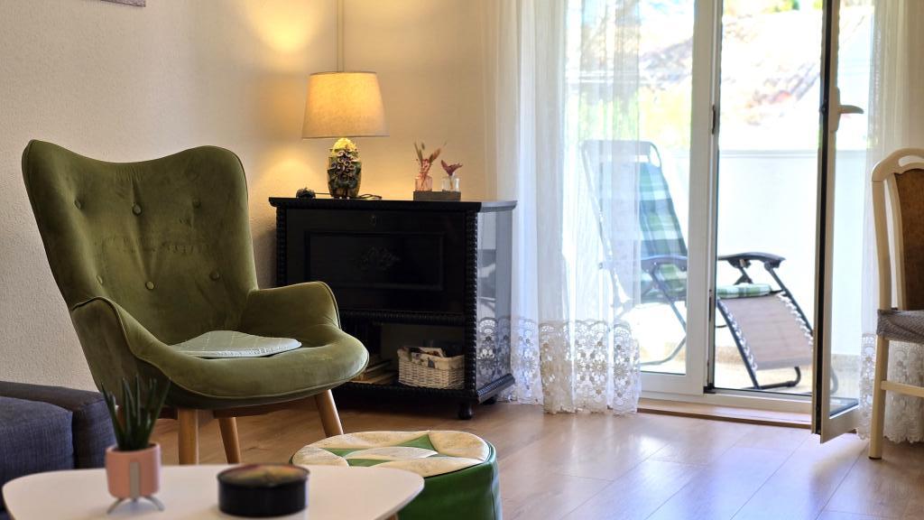 Apartmán Blanka 1 je ideální pro Vaši dovolenou, může ubytovat 3 osoby. Nabízí ložnici s manželskou postelí, další ložnici pro jednu osobu, obývací pokoj, jídelnu, kuchyň a koupelnu. Prostorná terasa s výhledem do zahrady poskytuje další prostor pro relaxaci a socializaci. Mezi další vybavení patří Wi-Fi, klimatizace a soukromé parkoviště, díky čemuž je tento apartmán praktickou a pohodlnou volbou pro váš pobyt.