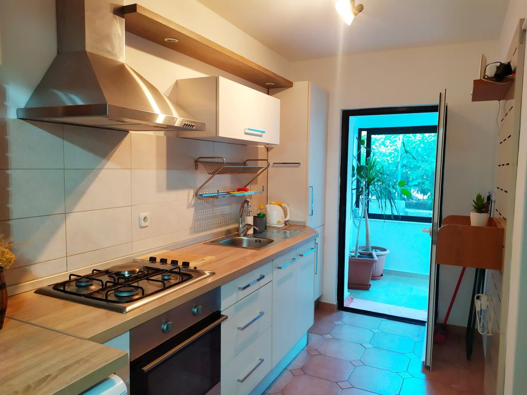 Pěkně zařízený byt s dvorem a terasou. V bytě je kuchyň, obývací pokoj s velkou pohovkou pro jednu osobu, koupelna a ložnice pro dvě osoby. Hosté mohou také využít gril. Byt se nachází na půli cesty mezi centrem města a nejbližší pláží. Centrum je vzdálené 4 minuty chůze a pláž 5 minut.