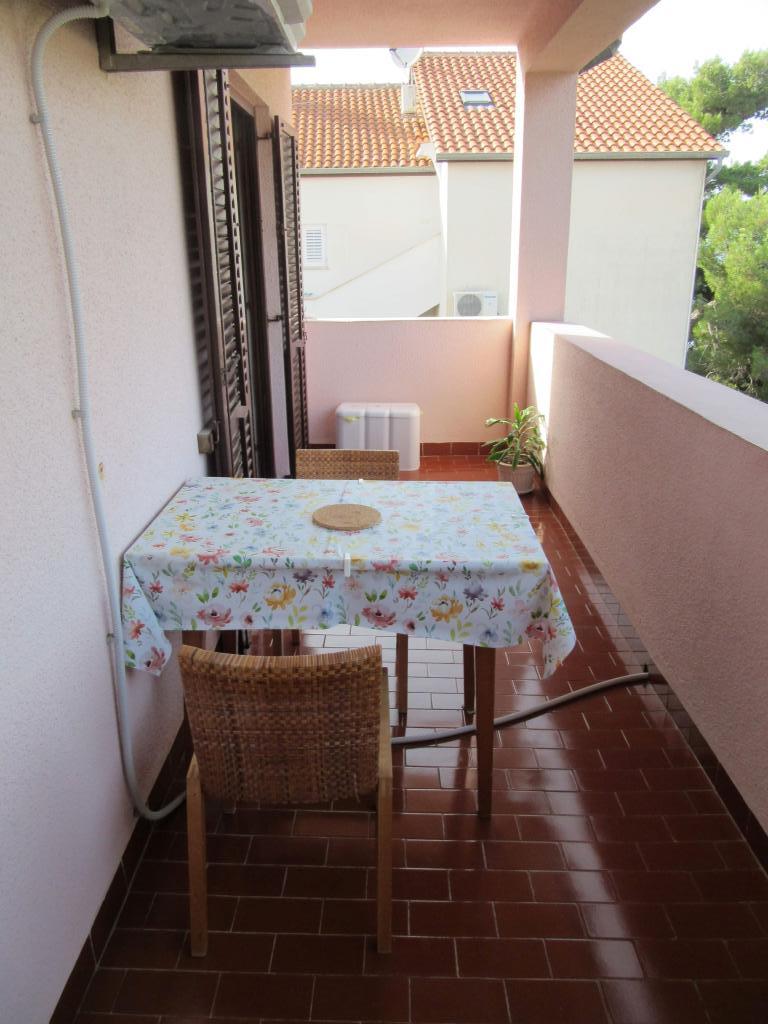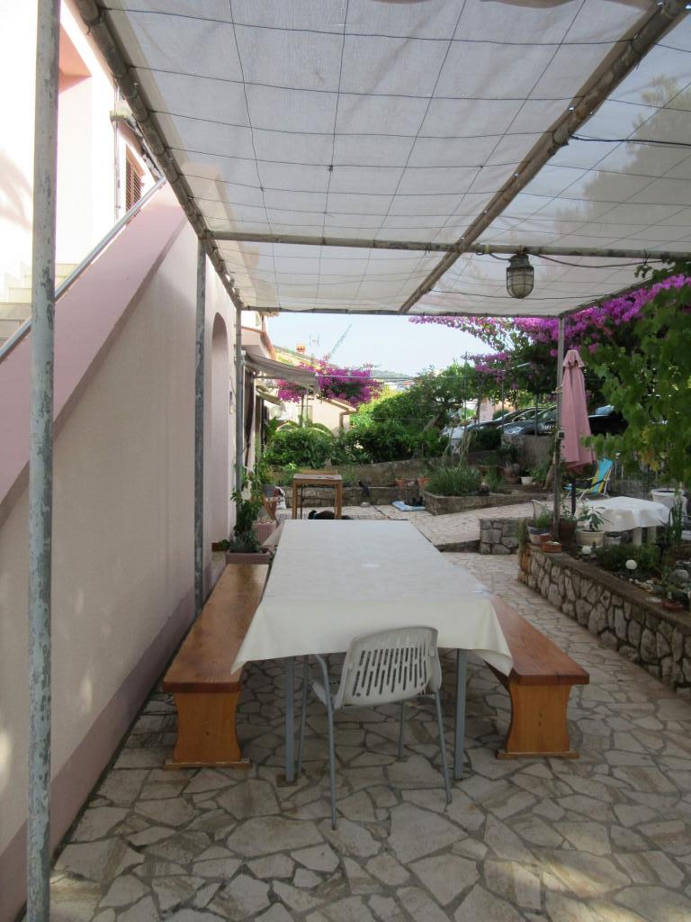 Plně a moderně vybavený dvoupokojový byt v prvním patře rodinného domu: dvě ložnice, jídelna, kuchyň, koupelna, obývací pokoj, dva balkony (výhled na moře). Zařízení se nachází v klidné oblasti, v blízkosti pláží, trhů, restaurací a další městské infrastruktury. Na dvoře domu je možné se ubytovat a stýkat se u velkého stolu s lavicemi a hosté mohou využít i gril. Jedno parkovací místo před domem.