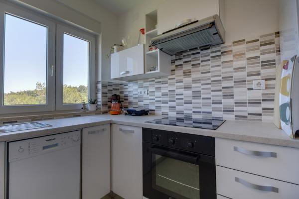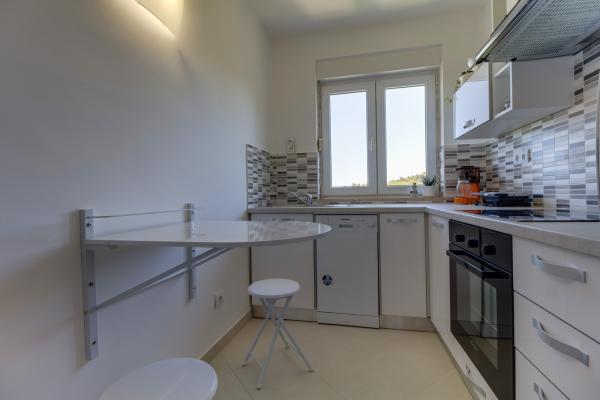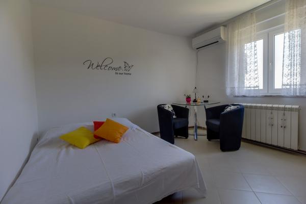 Nový, moderní byt se nachází mezi dvěma zálivy, Valdarke a St. Nejstarší část města Martin, který je také. Jedná se o velmi klidné okolí a velmi blízko centra, 800m. Na pláži, která je dosaženo tím, dlážděné uličce 100m. Samozřejmě v okolí existují i jiné pláže, můžete se dostat pěšky nebo několik minut jízdy autem. Byt se nachází v prvním patře a skládá se z ložnice, kuchyně a koupelny v přední části přebalovací pult dítě a je zde dětská postýlka. Kuchyň je moderně vybavená s myčkou nádobí, lednicí a mrazákem, troubou, kávovarem a veškerým potřebným kuchyňským nádobím. Koupelna se sprchovým koutem a pračkou. Místnost je vybavena stolem s dvěma křesly k odpočinku a pohovkou, která sahá do 150x200cm postel a šatní skříní. Je možné zařídit přistýlku. Místnost je klimatizovaná a vybavená TV a wi-fi internet. Po předchozí dohodě povoleno vedení uklizené zvířata.