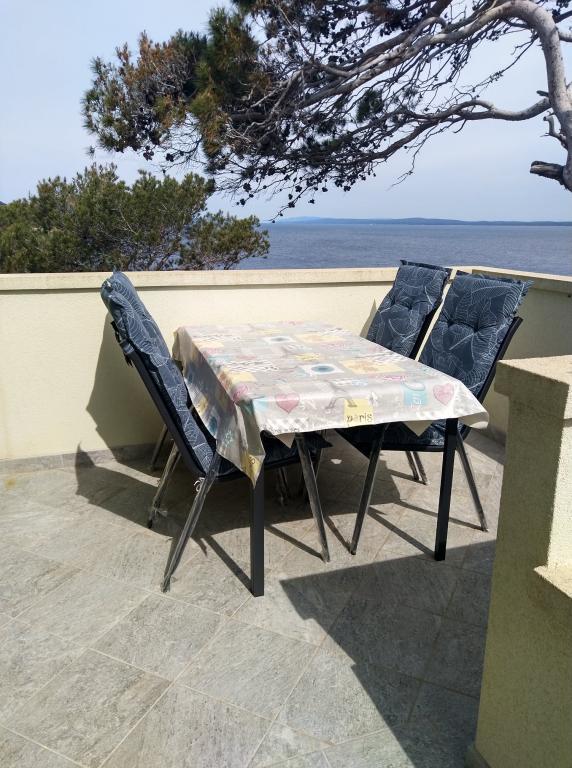 Byt se nachází v klidné osadě, jen 50 m od moře, kde vám nabízíme ke spánku a probuzení za zvuku moře a cvrlikání cvrčků. Byt je vhodný pro rodinu s dětmi, dva páry nebo čtyři přátele, kteří si chtějí odpočinout od ruchu velkoměsta. Apartmán má dvě ložnice, jednu koupelnu s pračkou, plně vybavenou kuchyň a malý obývací pokoj a terasu s výhledem na moře. V apartmánu máte ložní prádlo, ručníky, kuchyňské utěrky, toaletní papír, tablety do myčky, čistící prostředky, dezinfekce... V blízkosti apartmánu jsou dvě pláže, cca 1-3 minuty chůze. Byla by ale opravdu škoda zůstat na ostrově a nenavštívit další krásné pláže s přírodním stínem, které jsou od našeho apartmánu vzdáleny pouhých 3-5 minut autem.Do centra města je to 10 minut. snadné procházky po promenádě u moře.
