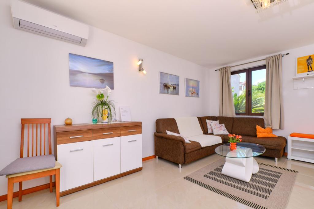 Byt je prostorný, pěkně zařízený s krbem na zahradě. Má klimatizaci a WIFI internet. V blízkosti se nachází restaurace, obchod, dětské hřiště. Pláž není daleko od bytu a do centra města je to 10 minut. V ceně je zahrnuto parkování před domem,