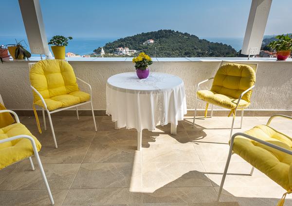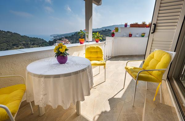 Útulný a mimořádně čistý byt s pevnou terasou a nádherným výhledem na moře a hory. Mimořádně angažovaný a milý majitel, vždy připravený k dialogu a možné pomoci. Dobré umístění Jedinou menší nevýhodou - blízkost hlavní silnice, ze které vychází dopravní hluk.