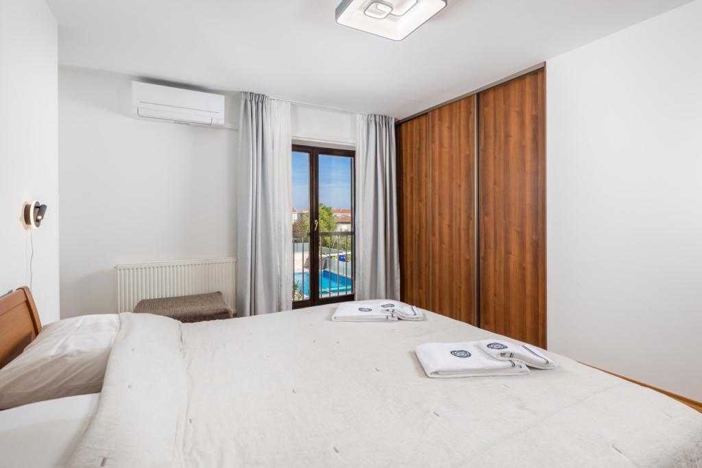 Plně vybavený a klimatizovaný apartmán se nachází v prvním patře rodinného domu. Dům se nachází na konci malé slepé ulice - žádný provoz. K dispozici je parkovací místo. Pokud vlastníte loď, můžete ji zakotvit v malém přístavu jen 100 metrů od domu. Rezervaci spojů je nutné nahlásit při rezervaci apartmánu. V samotném přístavu jsou také tři velmi dobré restaurace, známé po celém ostrově. Na dobře udržovanou pláž vám stačí 8 minut snadné chůze. Na pláži je sprcha a také další restaurace. Pro vaše ratolesti Porat zařídil pěkné dětské hřiště, které se nachází na půl cesty k pláži od našeho domu.