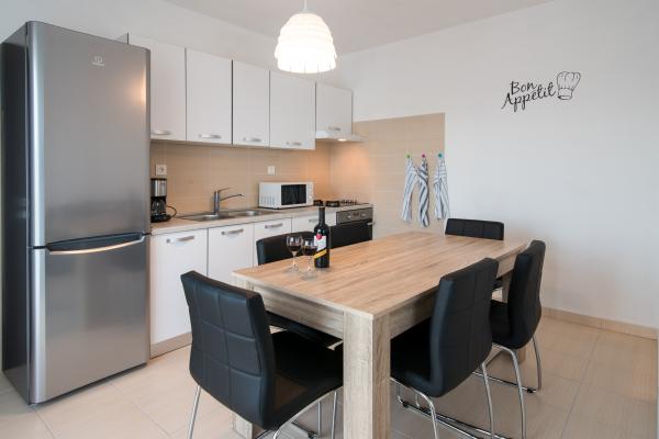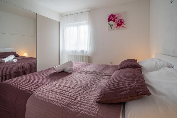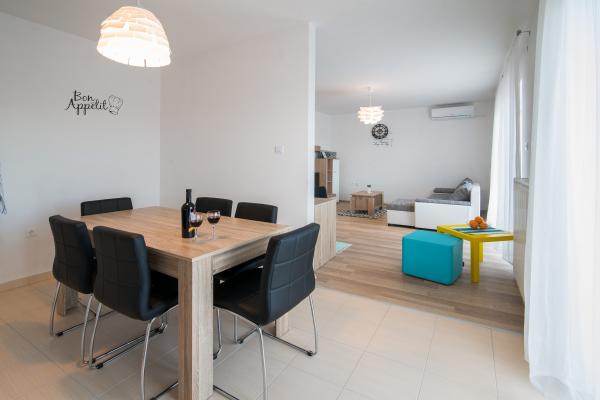 Krásný nově zrekonstruovaný apartmán pro 6 osob, 2 na ostrově Krk, v Rasopasno. Byt má rozlohu 85 m2 a má terasu o velikosti 35 m2, ze kterého krásný výhled do okolí. Byt má tři ložnice, prostorný obývací pokoj, dobře vybavenou kuchyň a dvě koupelny. Pokud hledáte pro klidnou dovolenou a đeljni vám relaxaci, je to pravé místo pro vás. Na pouhých 200 metrů od apartmánů se nachází restaurace, a ve stejné vzdálenosti a obchodu.