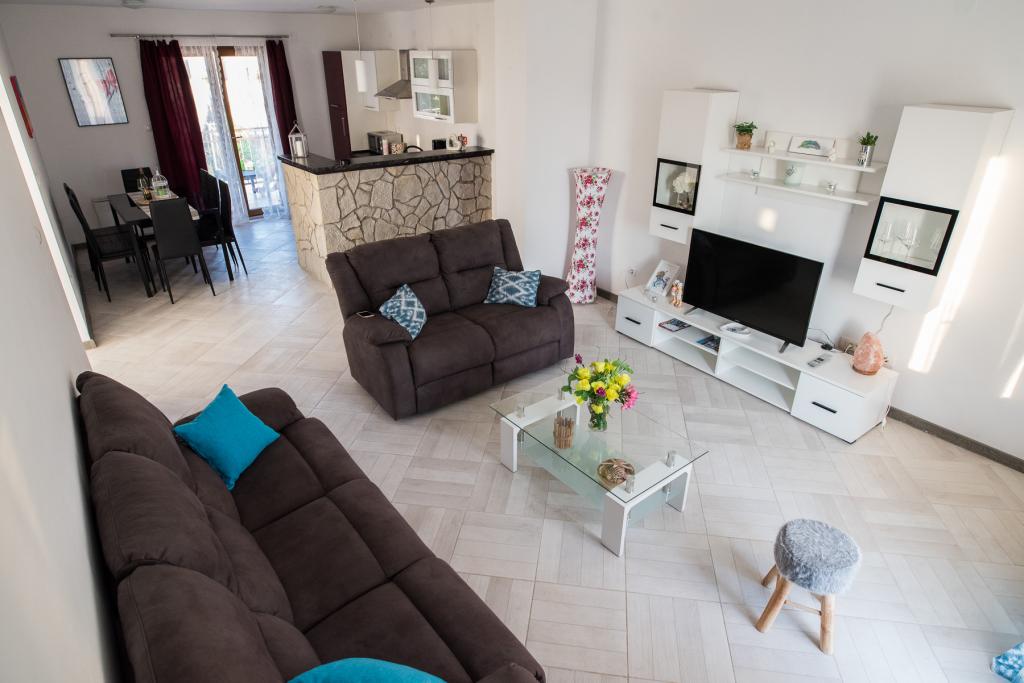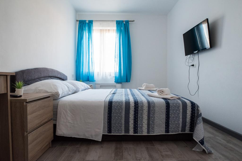 Moderně zařízený nový byt v klidné lokalitě, nedaleko od všech hlavních měst na ostrově Krk, které nabízejí celou řadu zařízení: restaurace, kavárny, plážové bary, zábavní program pro děti a další. V bytě je možnost ubytování až osmi osob kromě jednoho malého dítěte, protože máme dětskou postýlku. Obchod se nachází 20 m od apartmánu, stejně jako fotbalové a basketbalové hřiště. Byt je nový, má 4 velké ložnice, každý s vlastní televizí a klimatizací. Každý pokoj v apartmánu má vlastní klimatizaci. Má dvě plně vybavené koupelny, kuchyň, obývací pokoj, dva balkony a soukromé parkoviště. Několik kilometrů od bytu se nachází mnoho různých pláží: oblázková, písčitá, skalnatá, betonová a pláž s léčivým bahnem. Nachází se v samém srdci ostrova Krk a je snadno dostupný, asi 15 km od mostu a 12 km od letiště.